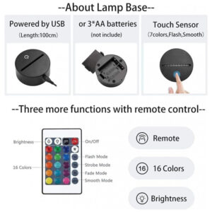 Luminária 3D LED Mickey CUTIA Preta Controle Remoto 16 Cores Acrílico ABS USB/Bateria 25W 45V Infantil Decoração Quarto 134g