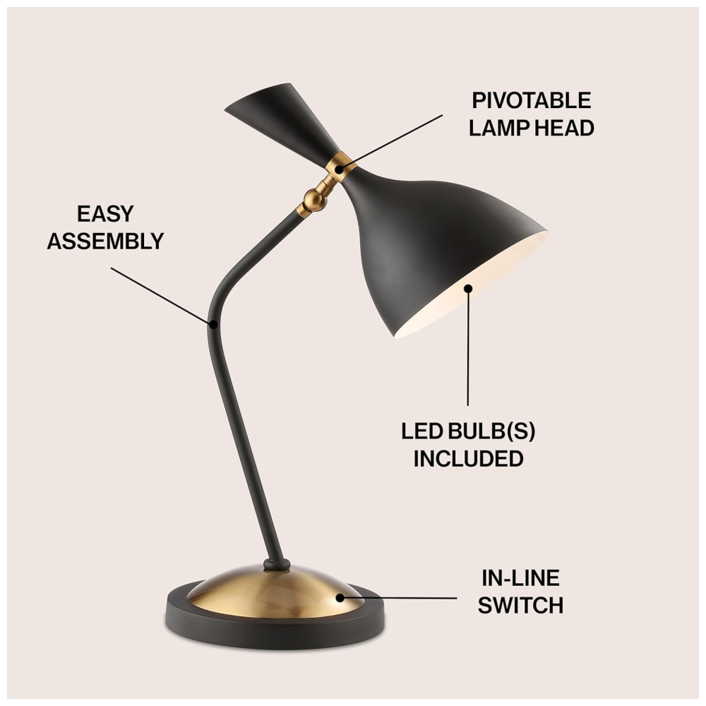 Adicione um toque de meados do século ao seu escritório em casa, dormitório ou área de trabalho com a silhueta descolada desta luminária. Os toques de qualidade incluem uma base ponderada e um cabo envolto em seda com interruptor em linha.