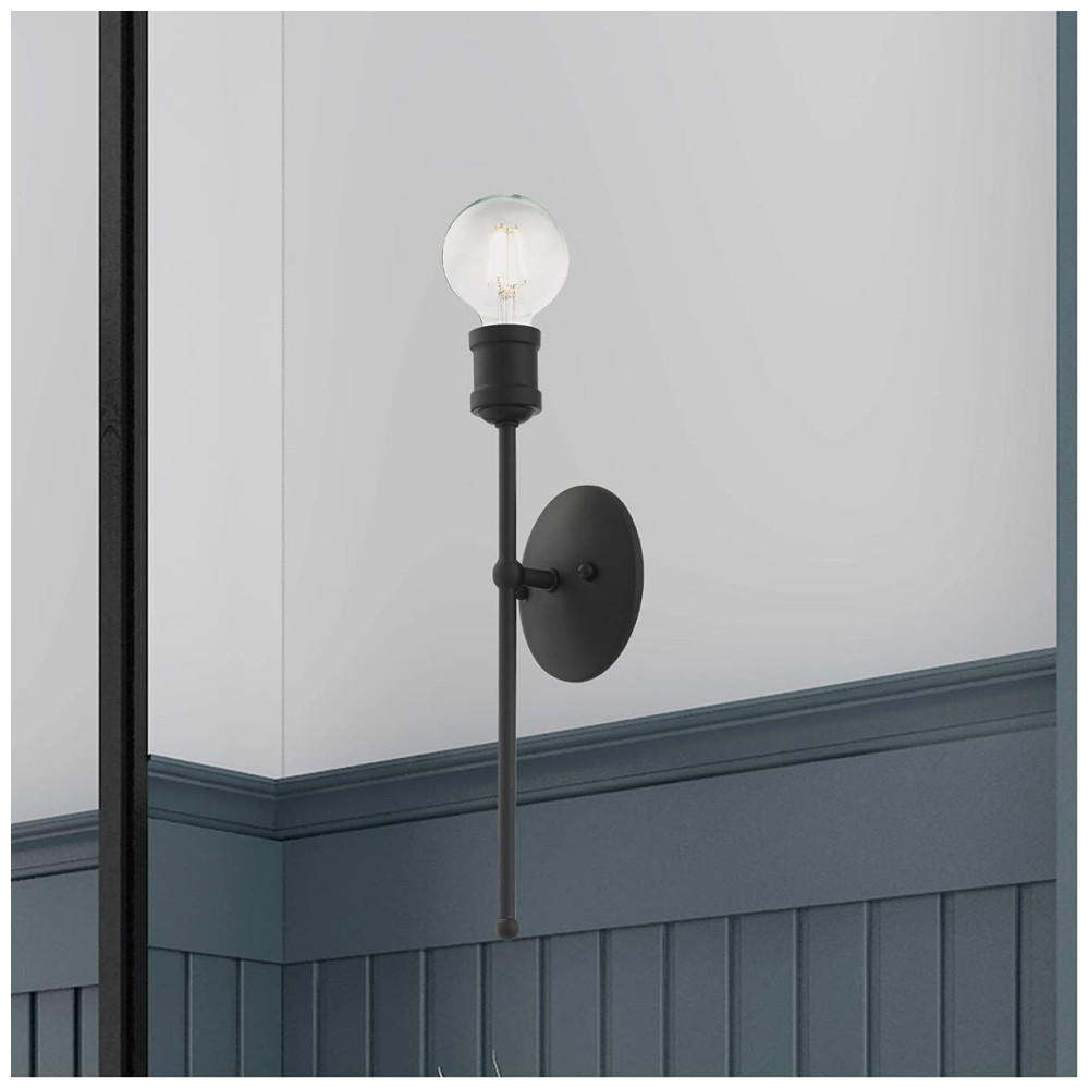 Ideal para quartos, corredores ou penteadeiras de banheiro, a arandela vem com acabamento preto, complementado por uma placa traseira preta com 5 cm de diâmetro e 1 cm de profundidade. Permitindo que você escolha a opção de iluminação que melhor se adequa ao seu ambiente.