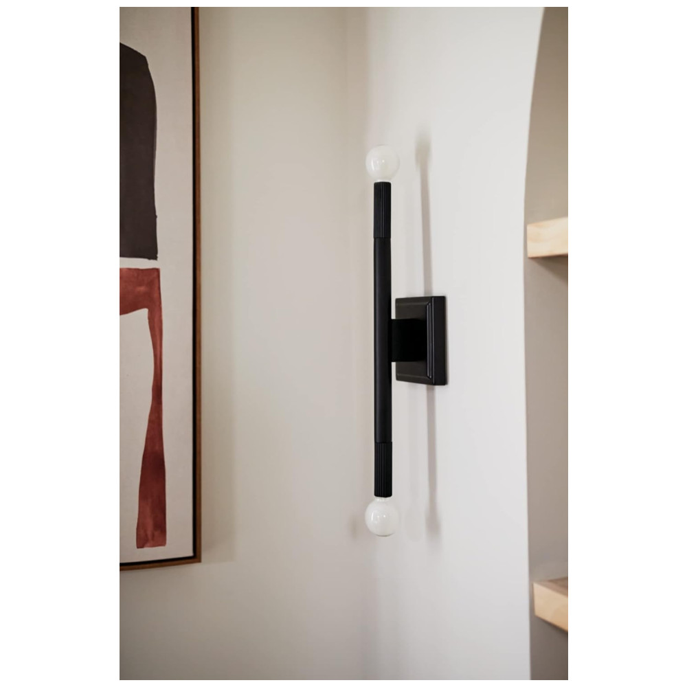 A luminária de parede Odensa 2 Light apresenta sulcos sutis em cada extremidade e linhas limpas, oferecendo um toque moderno suave que complementa qualquer ambiente. Seu acabamento preto atemporal e a tubulação ousada seguem a tendência, adicionando um ar de requinte e elegância ao espaço.