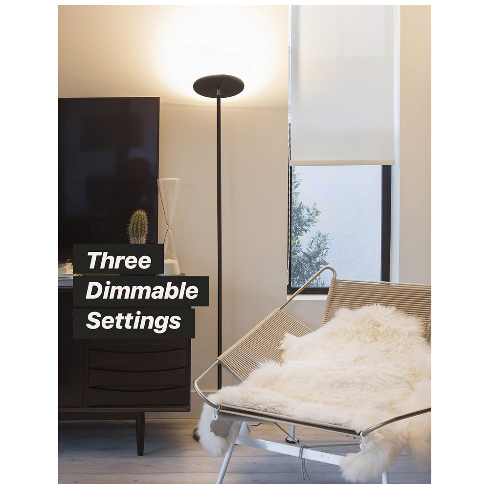 O dimmer integrado de 3 vias desta lâmpada de mastro vertical agora lembra sua configuração de brilho para a próxima vez que você ligá la e funciona com interruptores de parede