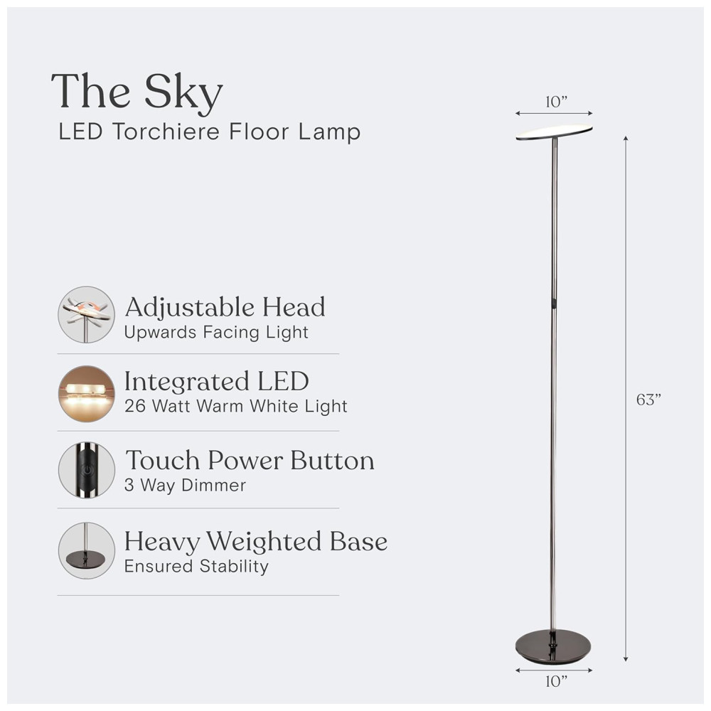 A LÂMPADA DE CANTO MODERNA É DIMMÁVEL EM 3 VIAS NOVA FUNÇÃO DE MEMÓRIA SALVA A CONFIGURAÇÃO DE BRILHO PARA A PRÓXIMA VEZ O Sky combina uma decoração moderna, minimalista, urbana, casual e contemporânea. A lâmpada do poste se encaixa facilmente nos cantos e a base desliza sob os sofás. O dimmer integrado de 3 vias desta lâmpada de mastro vertical agora lembra sua configuração de brilho para a próxima vez que você a ligar e funciona com interruptores de parede.