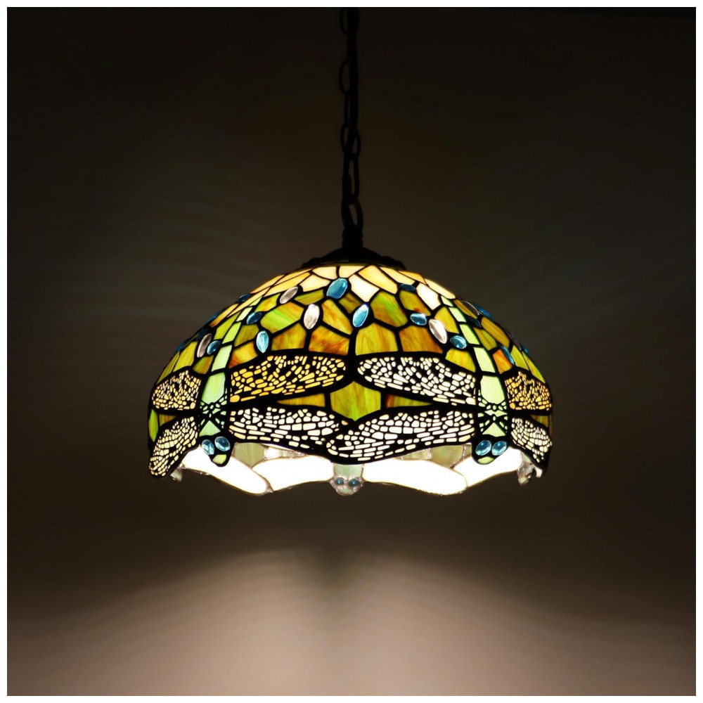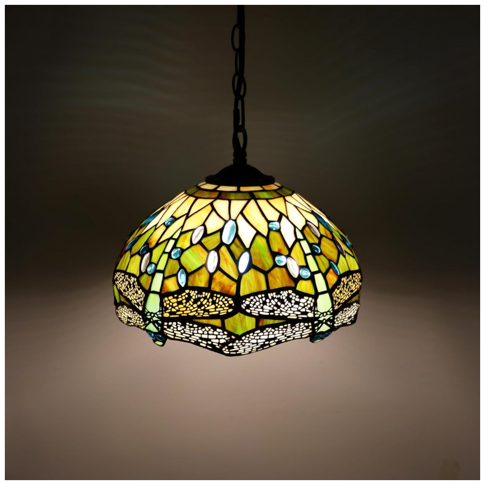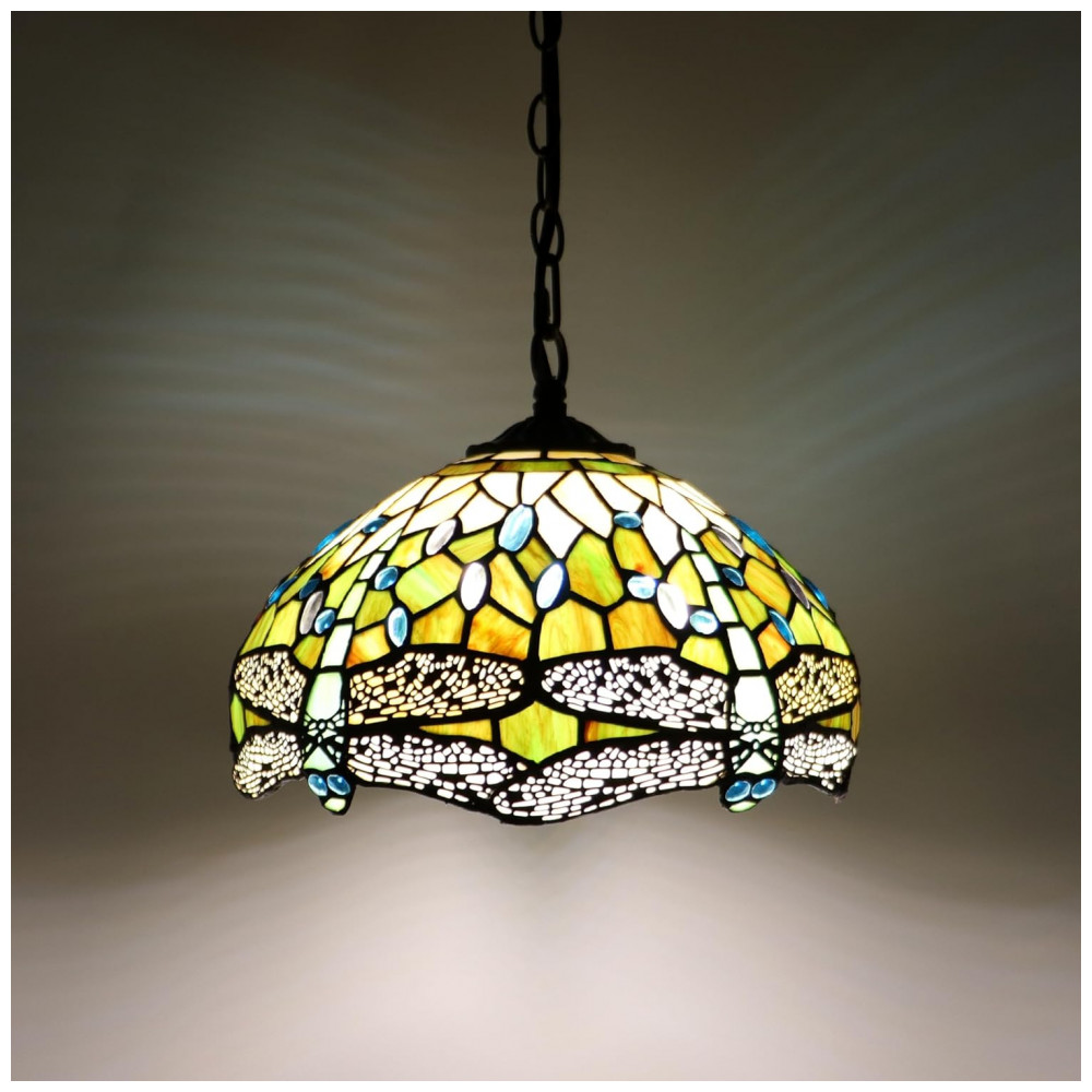 Encante qualquer ambiente com a Luminária Pendente Tiffany MQYXH, uma verdadeira obra de arte artesanal que une elegância, funcionalidade e charme vintage. Com uma cúpula feita à mão em vidro colorido e detalhes únicos da libélula amarela e branca, esta luminária traz um toque clássico e sofisticado para sua sala de jantar, sala de estar, escritório, quarto ou varanda. A estrutura em metal bronze oferece resistência e estilo, enquanto a cúpula em vitral, montada com bordas de cobre e soldada em estanho, cria padrões vibrantes e únicos que iluminam com cores acolhedoras e aconchegantes. O acabamento com óleo mineral garante durabilidade e brilho prolongado, mantendo a peça sempre linda e luminosa. A luminária possui um cabo de alimentação com 4,57 metros e uma corrente de ferro de 1 metro, oferecendo flexibilidade na instalação. Seu design suspenso, com sistema de botão de pressão para ligar e desligar, é compatível com lâmpadas do tipo E26 (não inclusas), recomendando-se o uso de LED ou incandescentes quentes, com potência máxima de 100 watts. Fácil de limpar e manter, basta aplicar uma leve camada de óleo vegetal com um pano macio para devolver o brilho original ao vidro colorido. Esta luminária não somente ilumina, mas também decora, criando ambientes quentes e confortáveis, perfeitos para qualquer espaço interno, seja residencial ou comercial. Produto testado e certificado, garantindo segurança e qualidade excepcionais para seu lar.