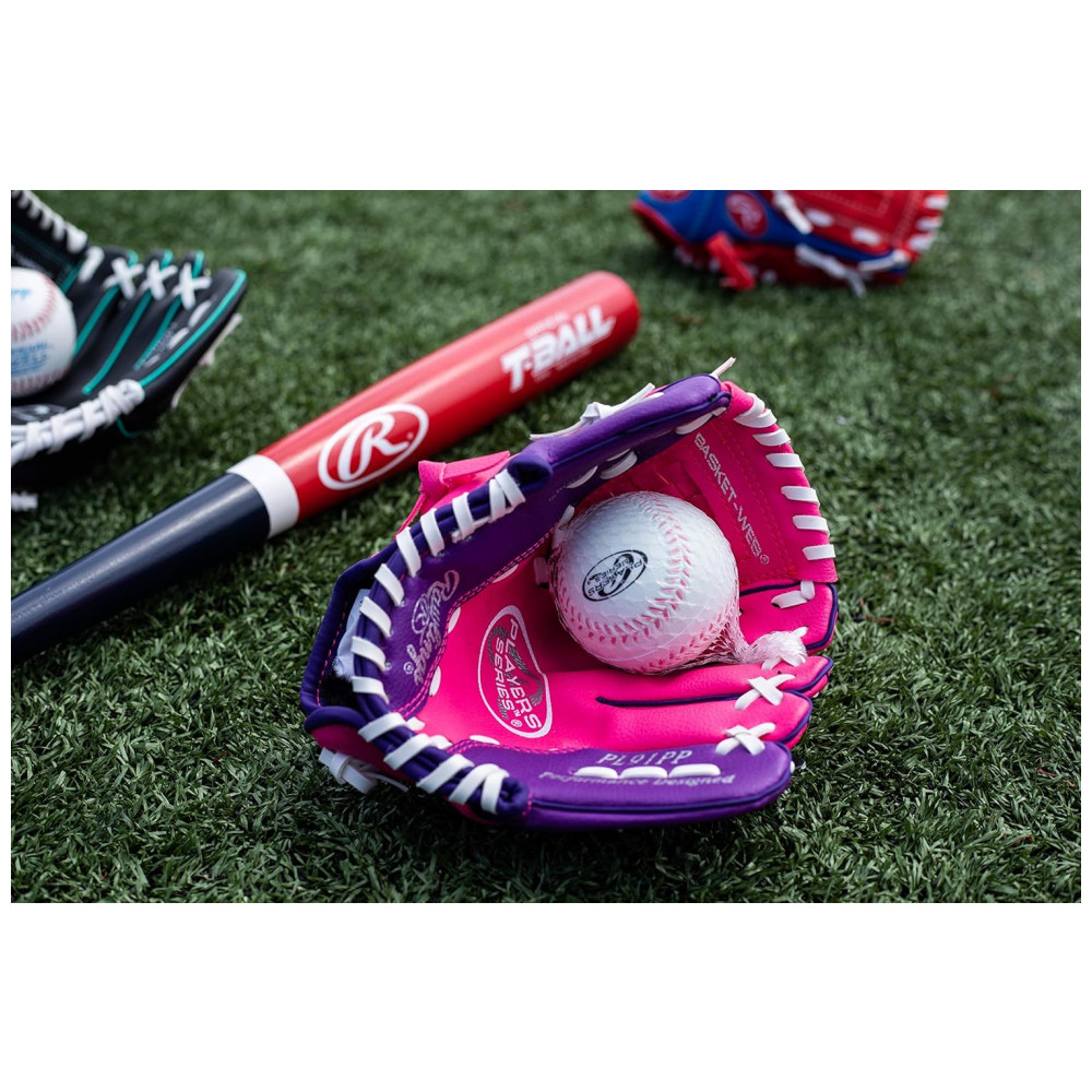 Luva de Beisebol Infantil Direita com Bola para Crianças de 3 a 5 Anos Rawlings Roxa