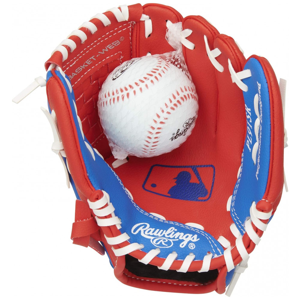 Luva de Beisebol Infantil Direita com Bola para Crianças de 3 a 5 Anos Rawlings Vermelha
