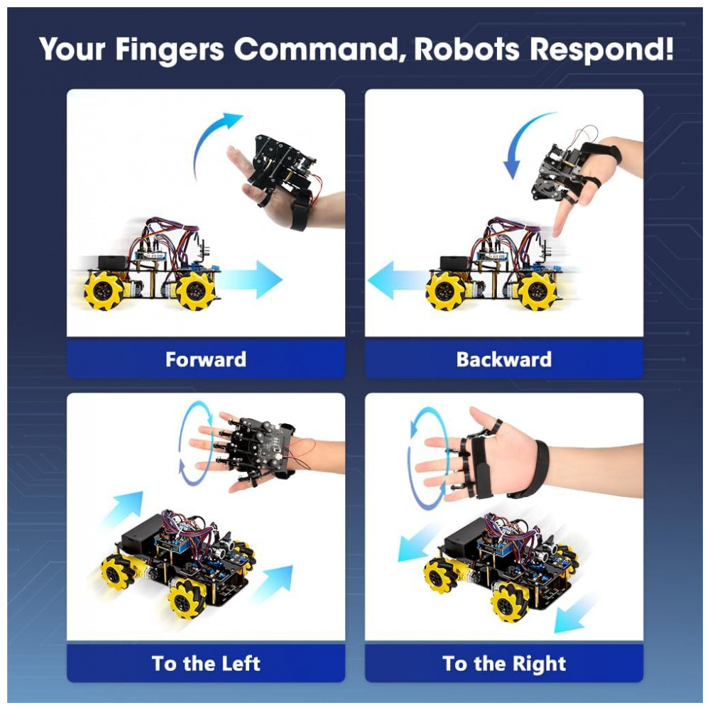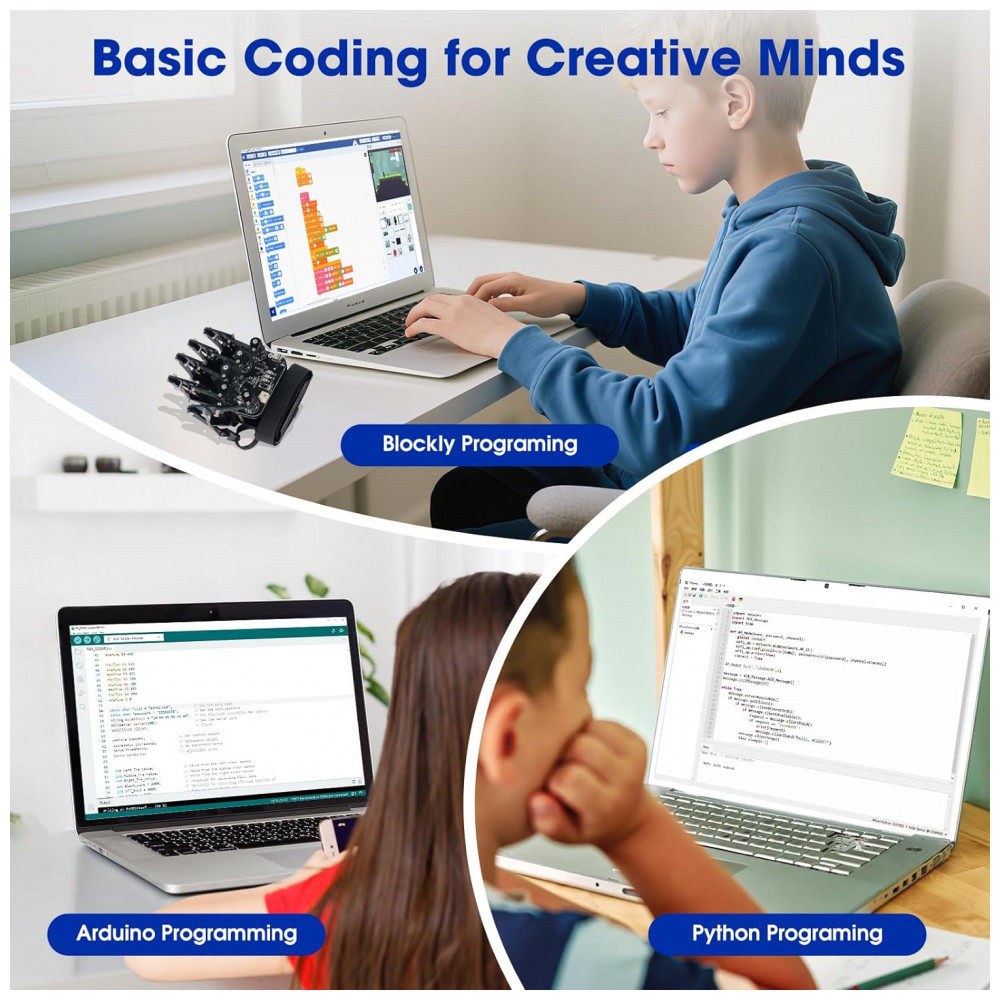 Uso recomendado: Laboratórios STEM/STEAM, clubes de robótica, aulas de programação e projetos de controle gestual de robôs em ambiente educacional ou doméstico
