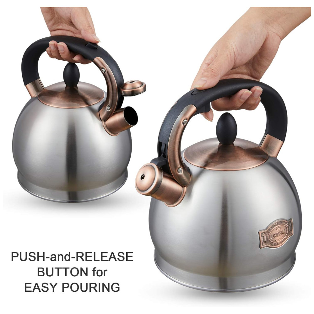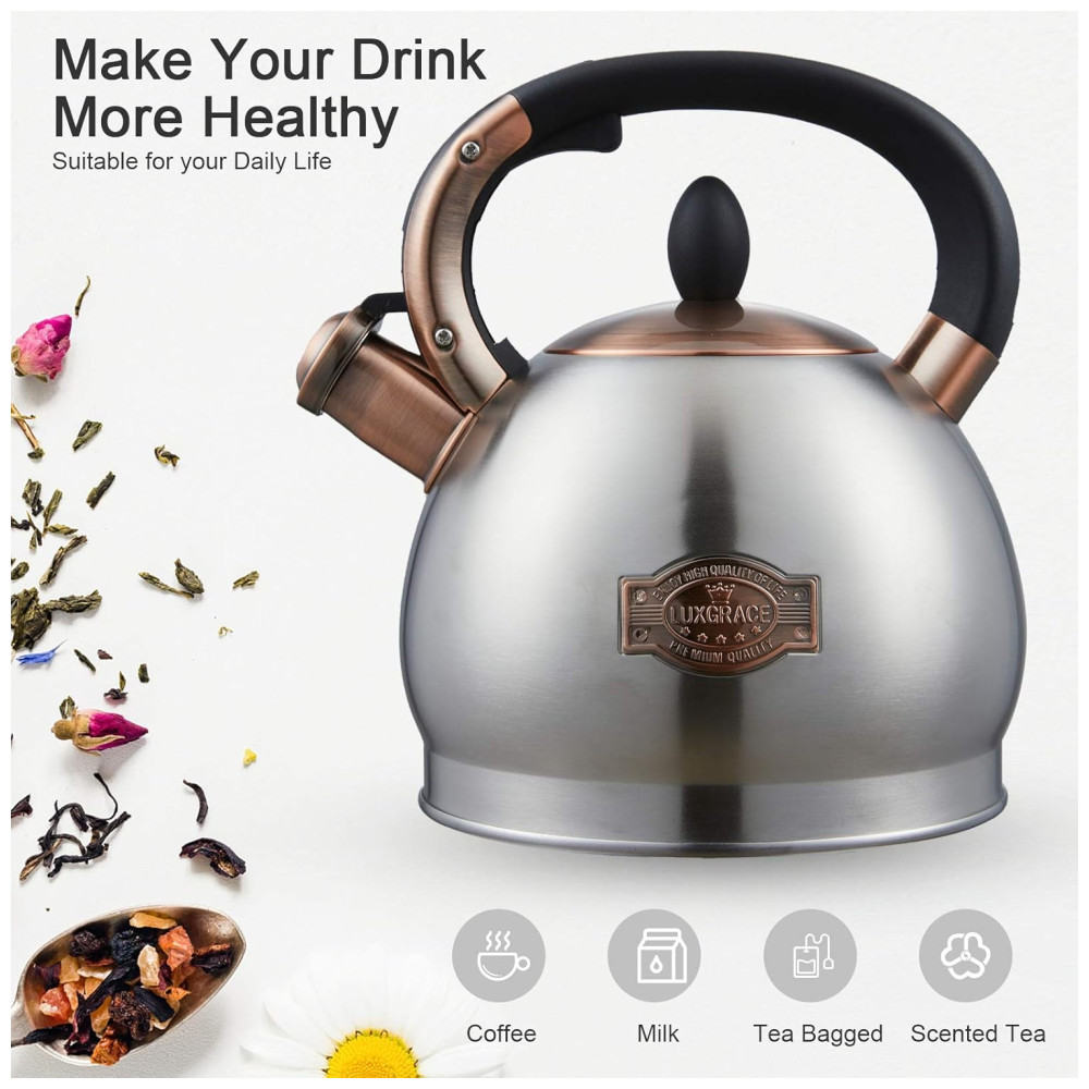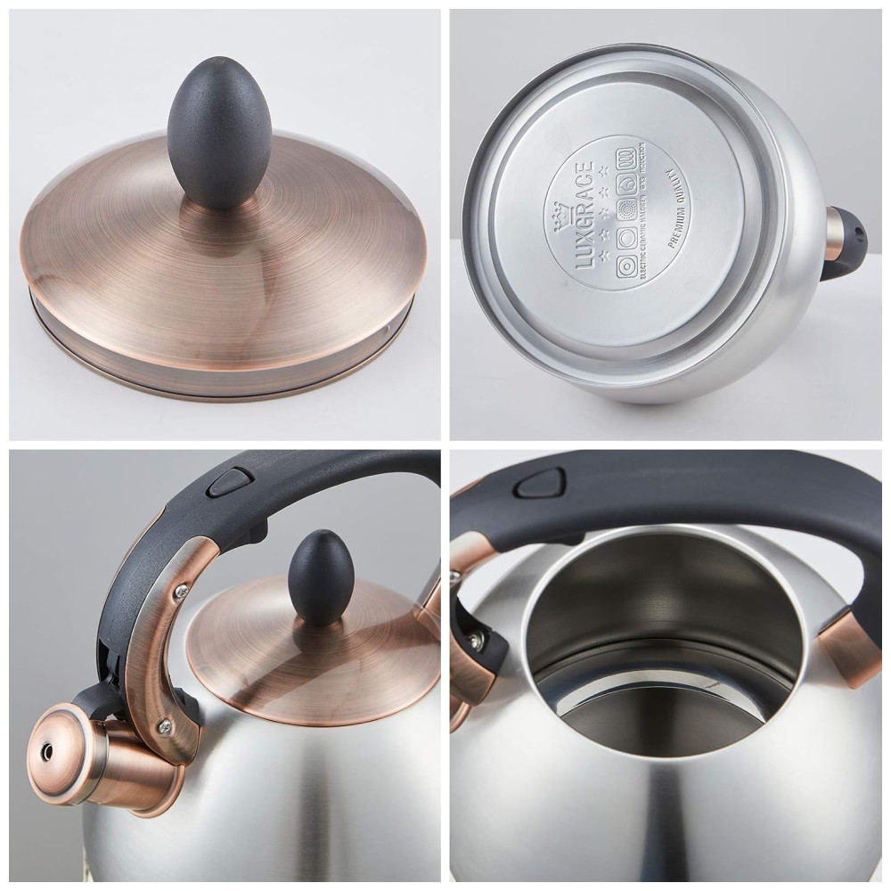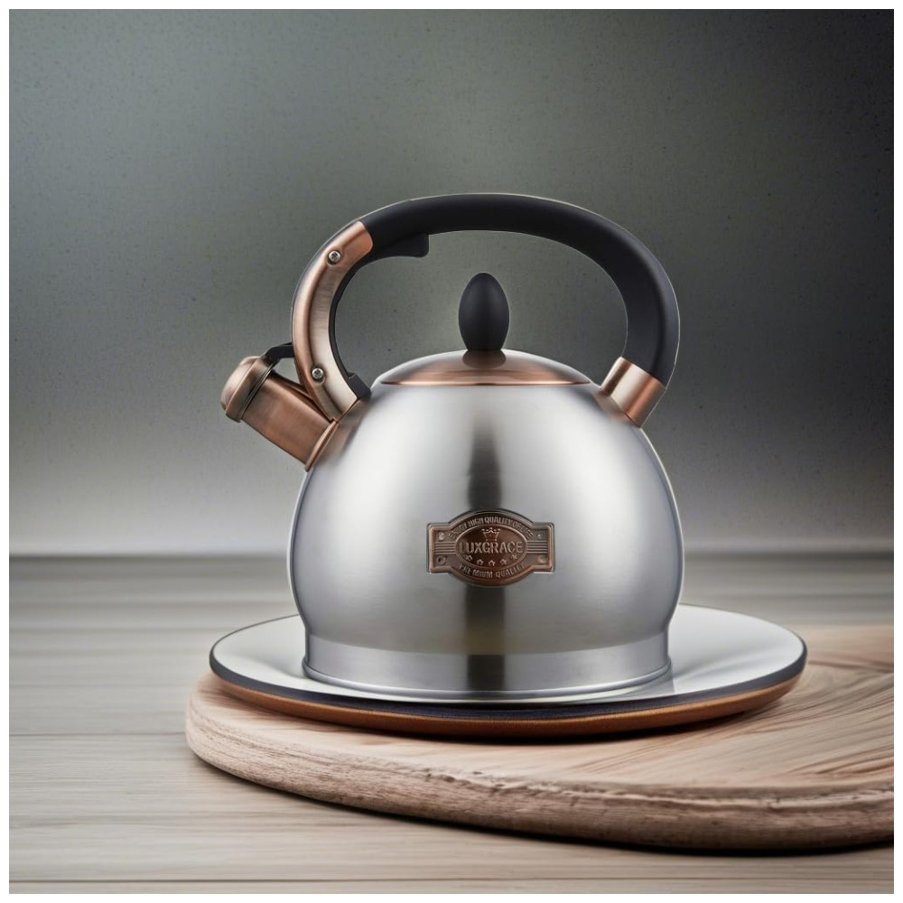 LUXGRACE Chaleira 2L com Apito e Cabo ergonômico Aço Inoxidável Prata