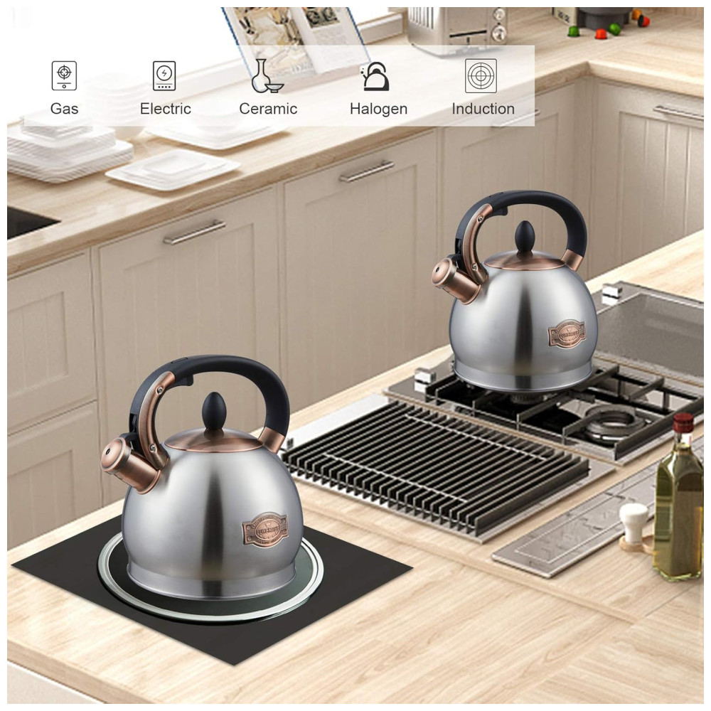 Aplicar a vários fogões Chaleira utilizável para qualquer fonte de calor, incluindo fogão de indução, fogão elétrico, fogão a gás, fogão radiante. Use fogo pequeno ou médio para aquecer o bule, ele aquece muito rápido e economiza energia