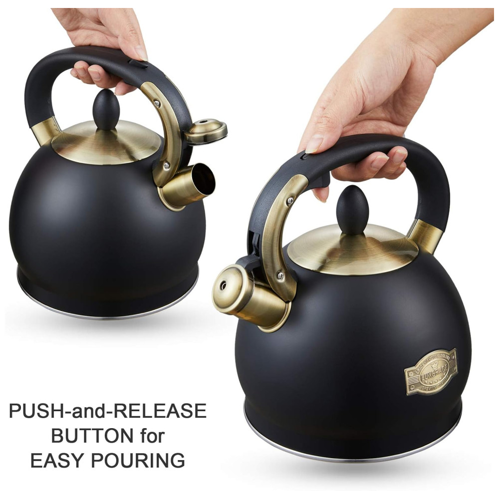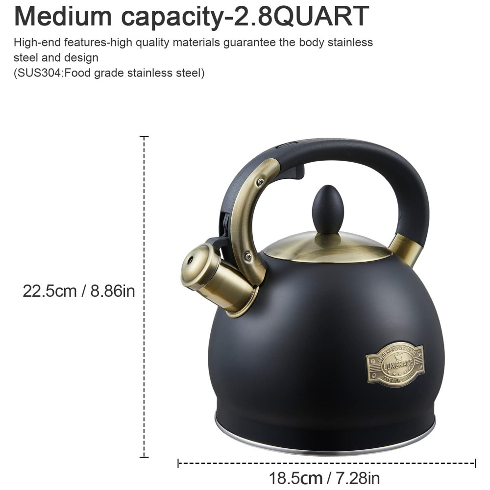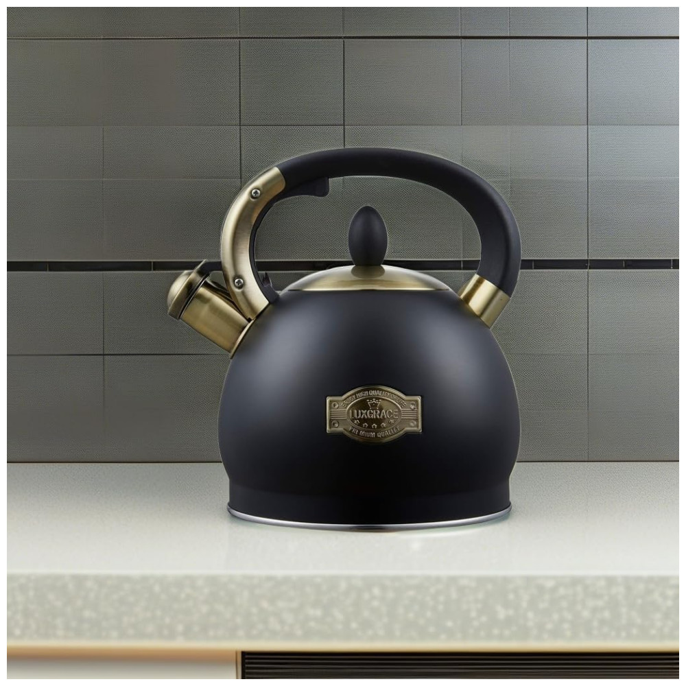 LUXGRACE Chaleira 2L com Apito e Cabo ergonômico Aço Inoxidável S P Preto