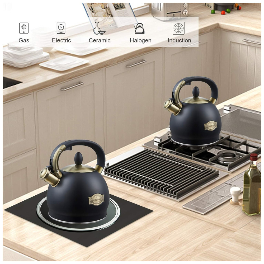 Aplicar a vários fogões Chaleira utilizável para qualquer fonte de calor, incluindo fogão de indução, fogão elétrico, fogão a gás, fogão radiante. Use fogo pequeno ou médio para aquecer o bule, ele aquece muito rápido e economiza energia