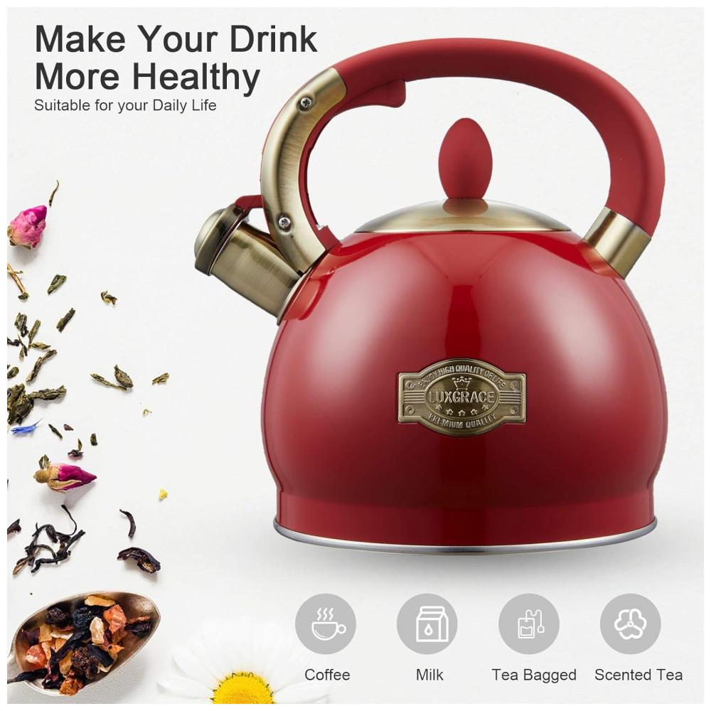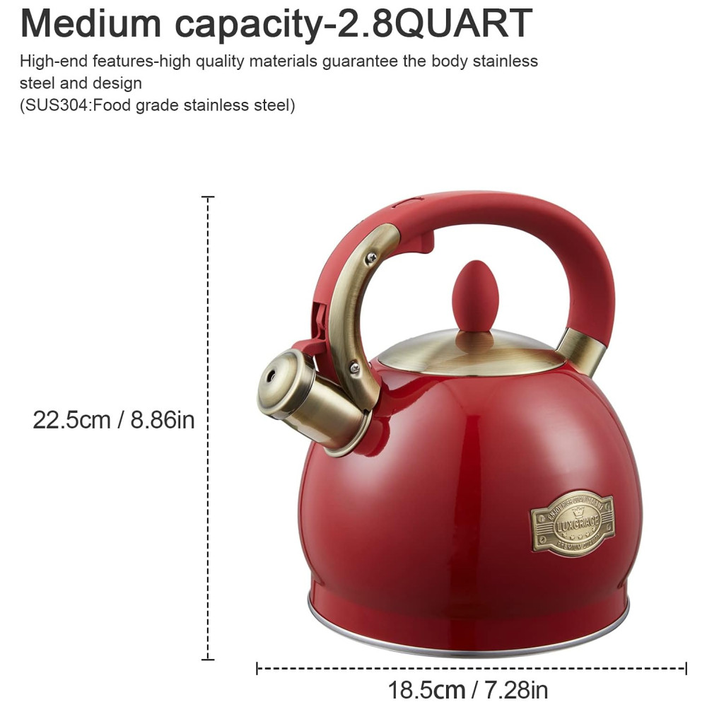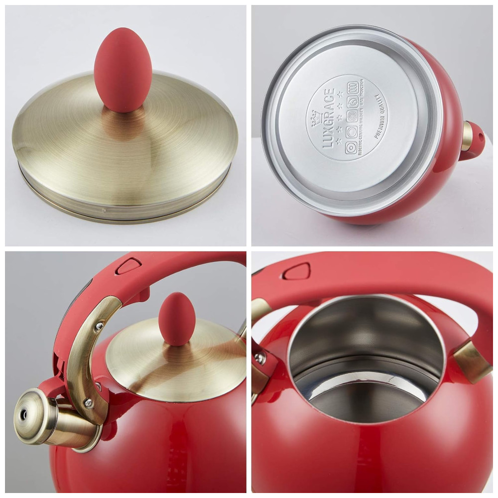 LUXGRACE Chaleira 2L com Apito e Cabo ergonômico Aço Inoxidável Vermelho