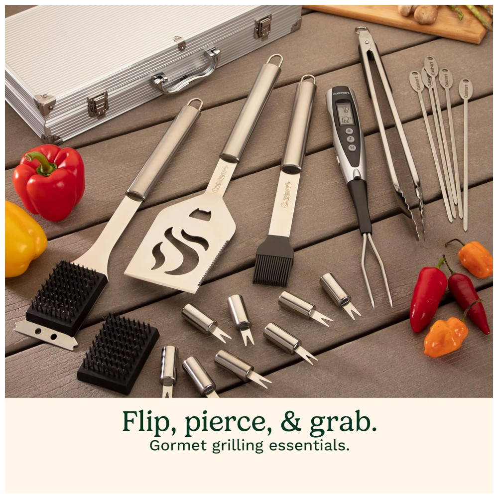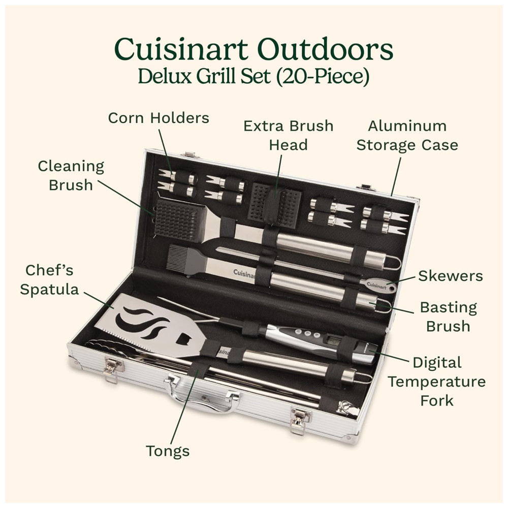 Luxo Acessório Churrasco Grill 20 peças Aço Inox Temómetro CUISINART CGS 5020 Prateado