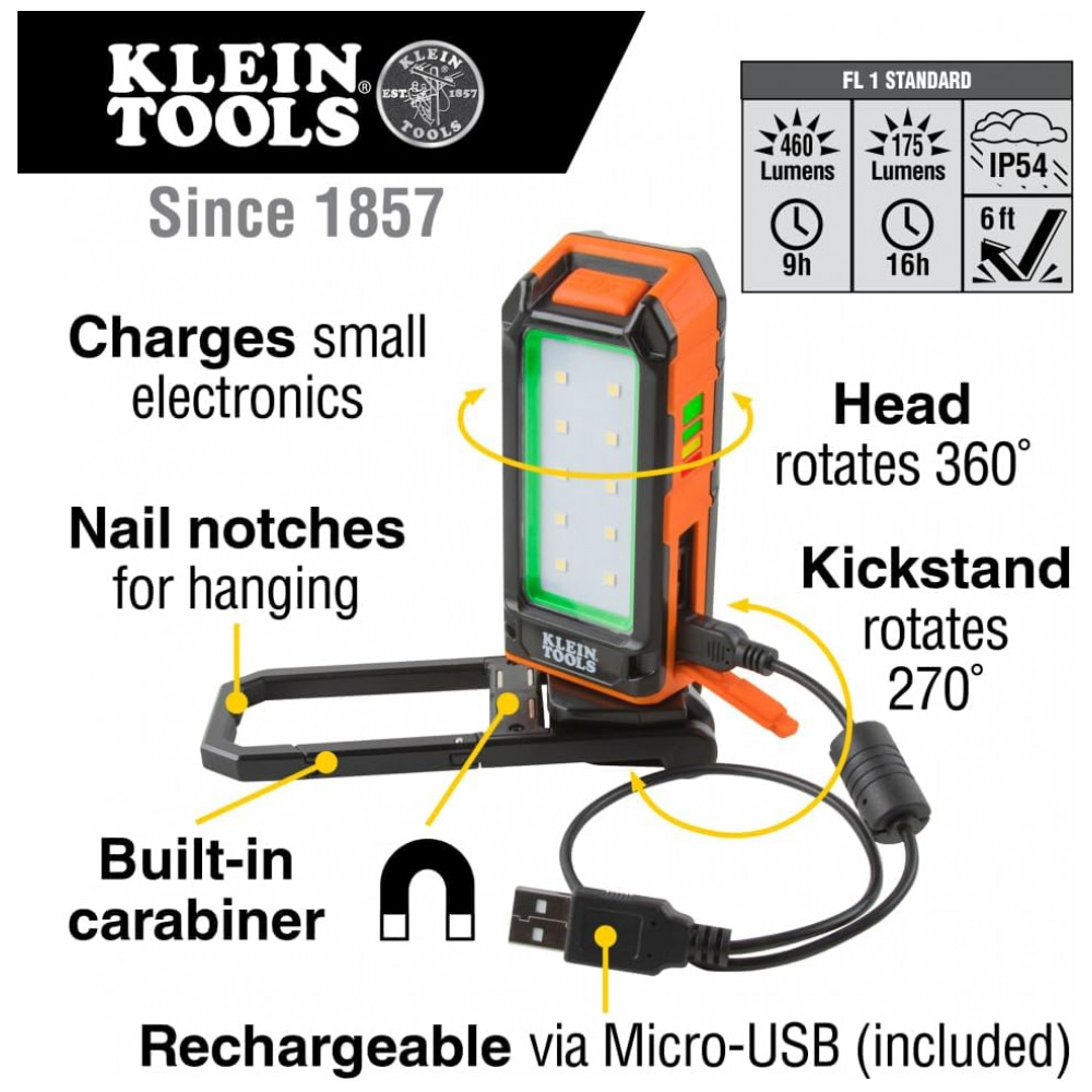 Luz de trabalho LED 460 Lúmens Recarregável USB e Portátil KLEIN TOOLS 56403 Laranja
