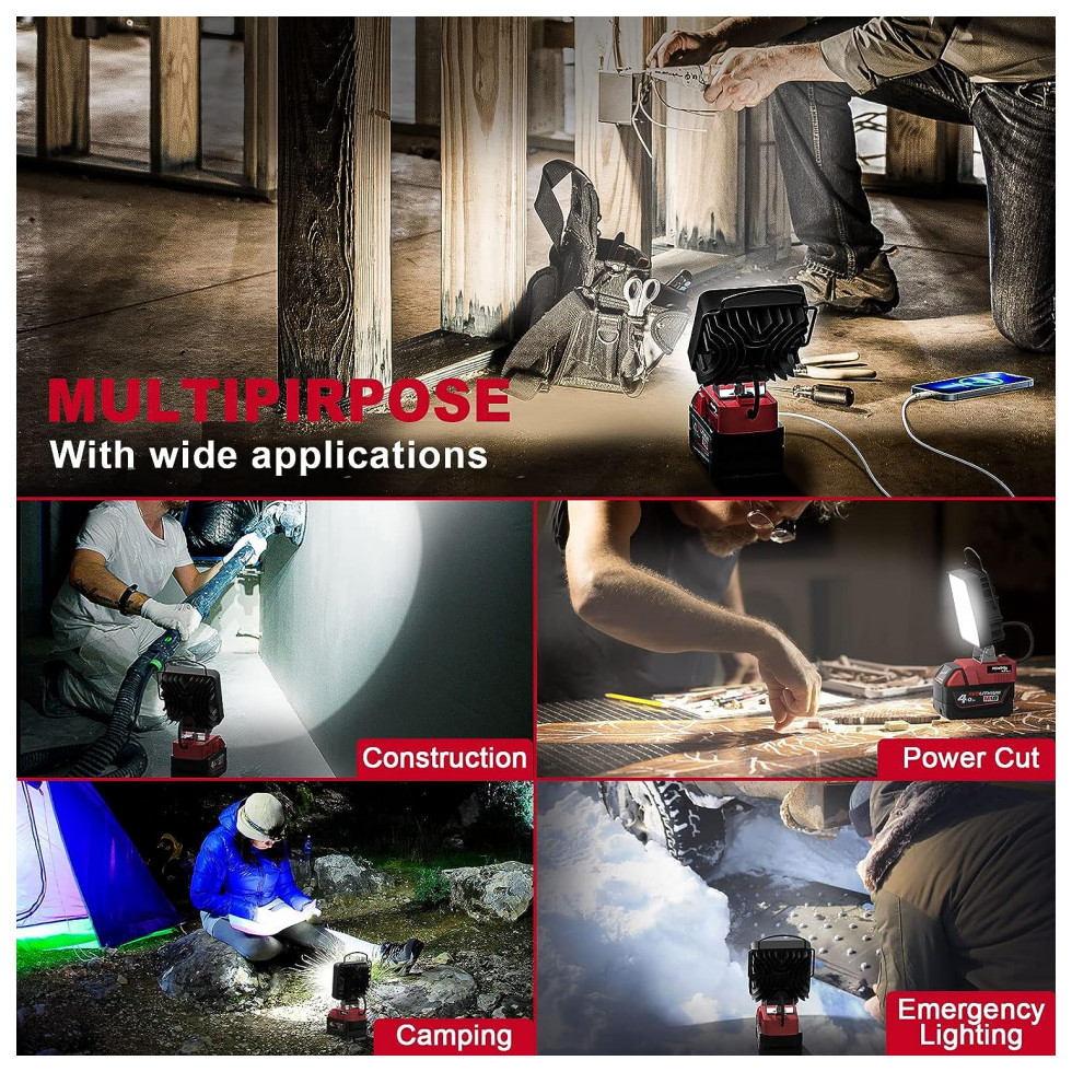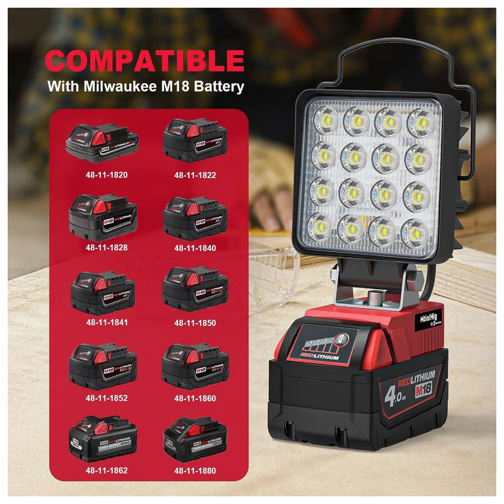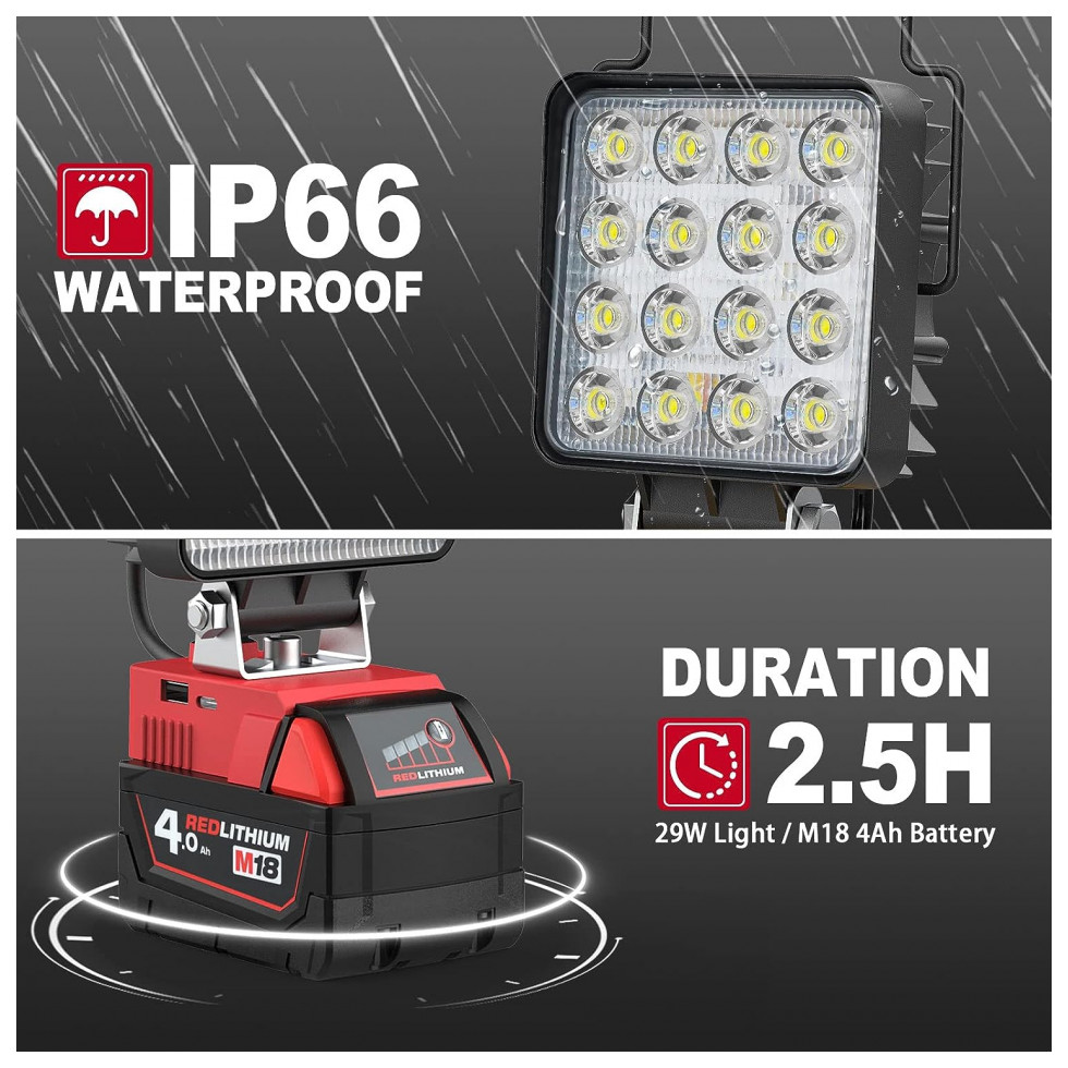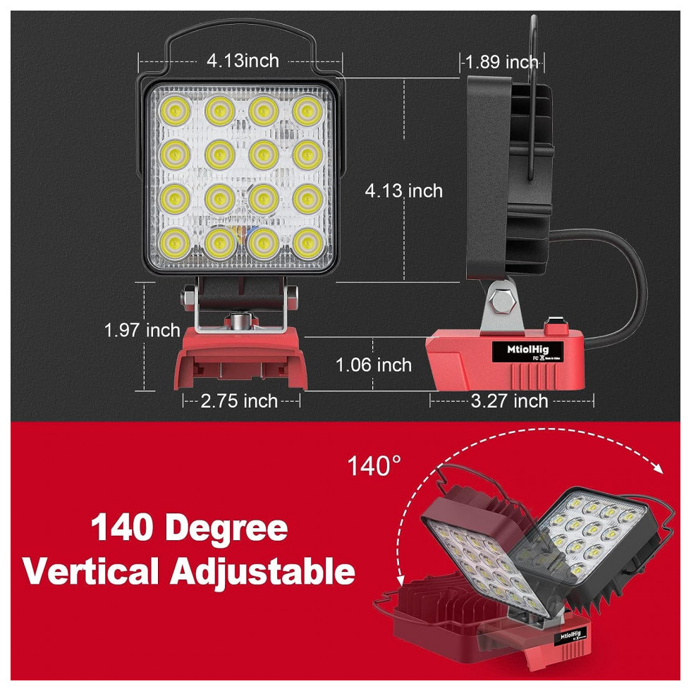 Luz de trabalho LED MtiolHig 29W 2900 Lúmens Alimentada por Bateria Milwaukee 18V Não Inclusa