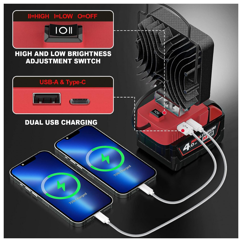 PROJETO DE SEGURANÇA As luzes de trabalho LED usb codlress são projetadas com um interruptor de 2 marchas, que pode controlar o brilho alto e baixo separadamente, para atender às diferentes cenas. Esta luz de loja alimentada por bateria possui um painel de proteção de baixa tensão embutido para proteger sua bateria contra danos. Ela cortará automaticamente a energia quando a tensão cair abaixo de 14,5V.