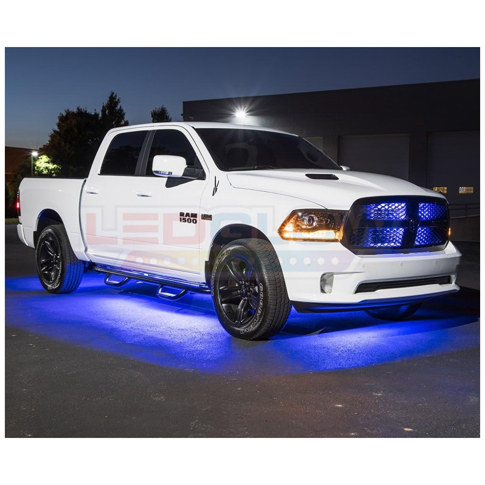 Adicione iluminação azul com brilho sublinhado ultra brilhante ao seu caminhão com tubos resistentes à água de 2 de 1,15 m 2 de 0,9 m e 2 de que abrigam 160 LEDs SMD Apresenta apenas iluminação de cor sólida. O kit está ligado e desligado com o interruptor de alimentação incluído Tubos na parte inferior da carroceria apresentam 1,8 m de fio em cada extremidade. Conexões Plug Play. Inclui instruções de instalação e instalação de hardware
