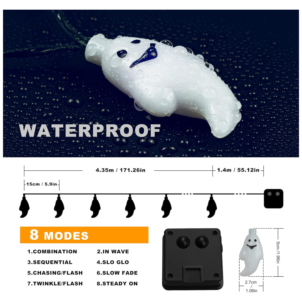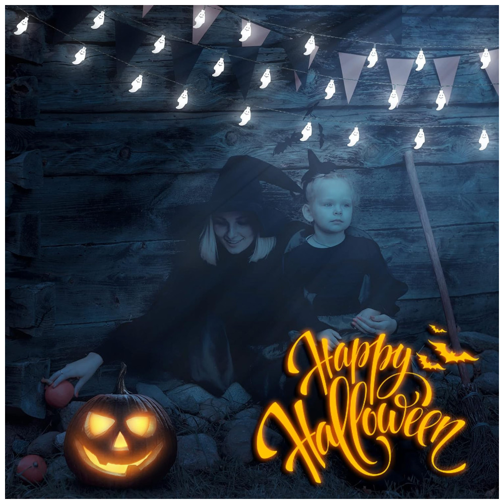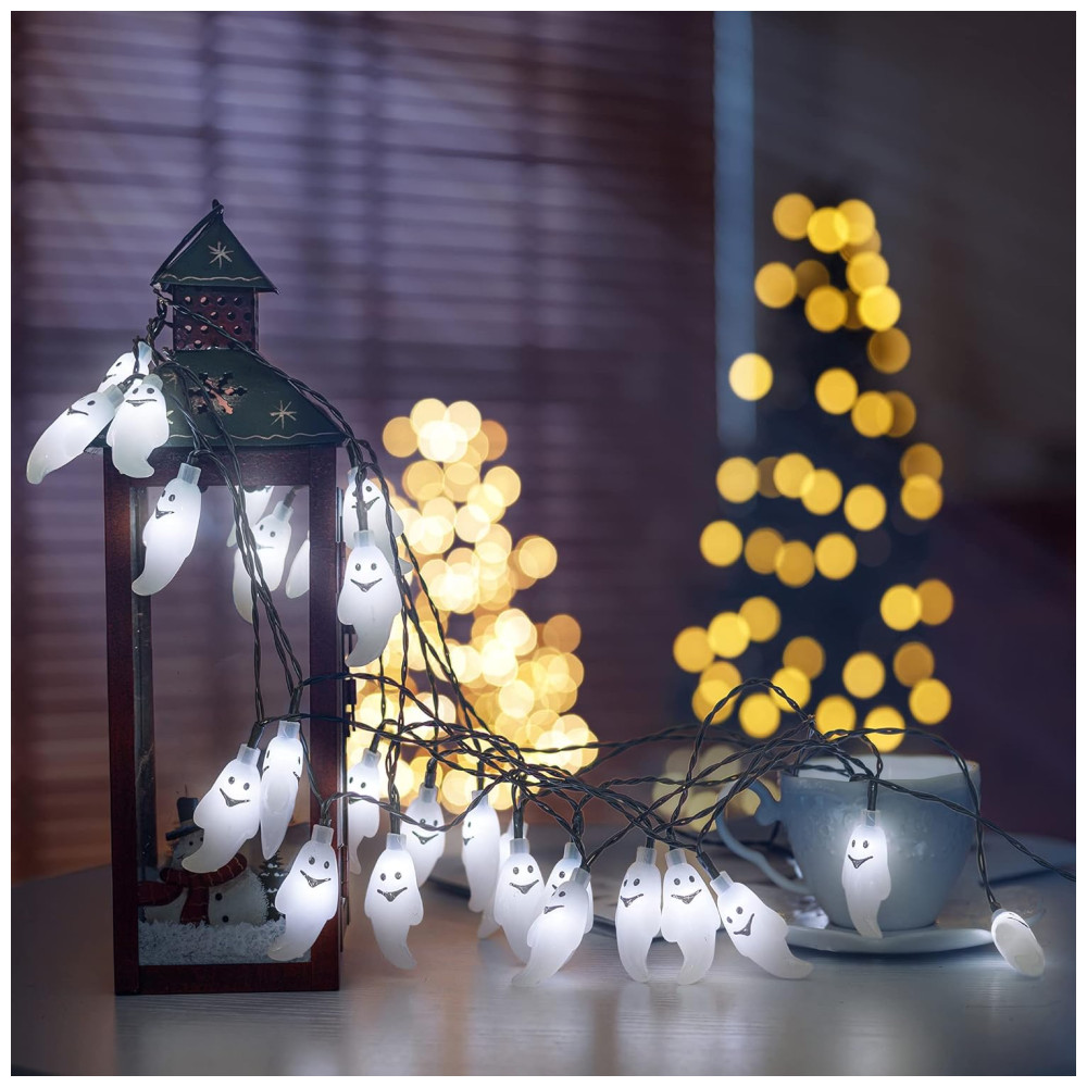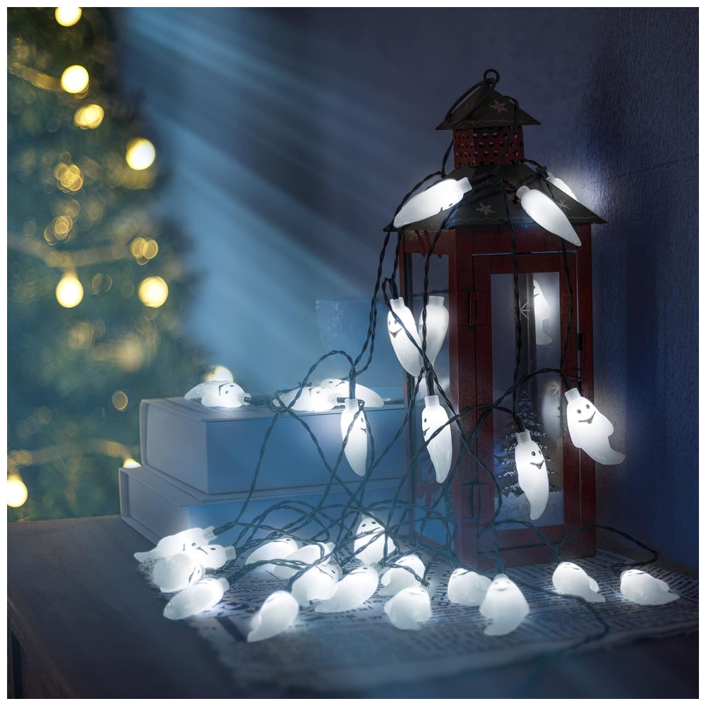 Luzes de Decoração de Halloween Solar 30 LED 6 Metros com 8 Modos 2 Un Fantasma