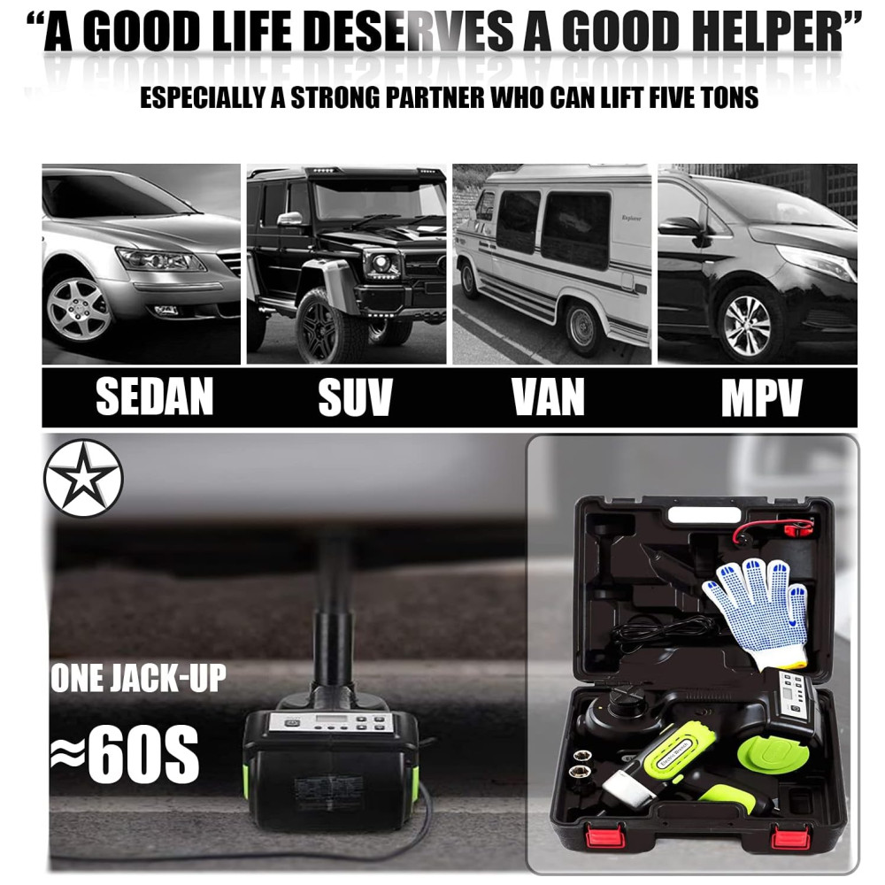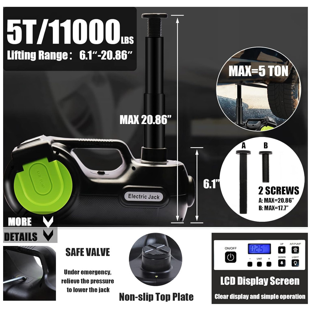 Macaco Automotivo Elétrico para até 5 Toneladas com Tela LCD e Chave de Impacto 12V Wayska