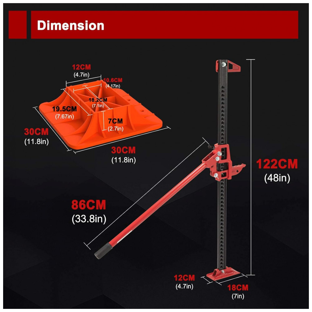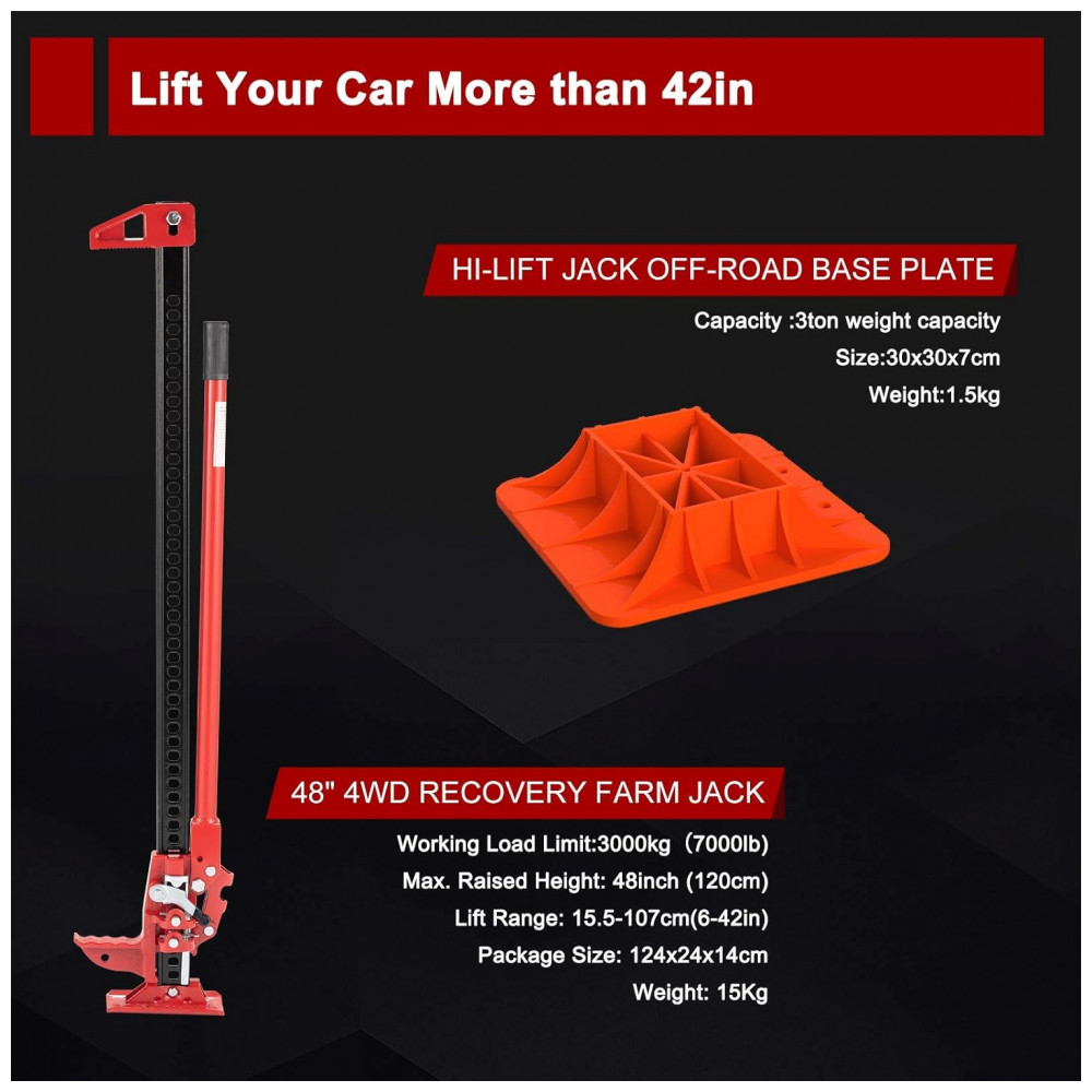 Tire seu 4WD de qualquer situação: O High Lift Farm Jack de 121,92 centímetros com base de macaco é ideal para viagens off road, levantando, empurrando ou puxando equipamentos, pequenos edifícios e caminhões. Também é ótimo para uso agrícola, trabalhos de cerca, guincho, remoção de tocos e muito mais.
