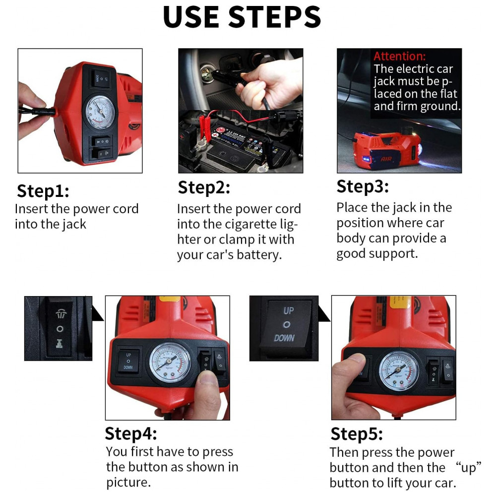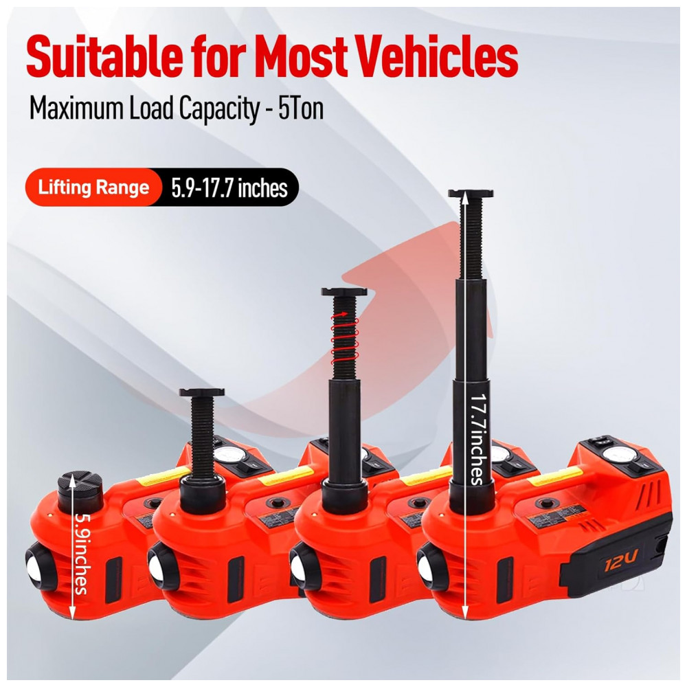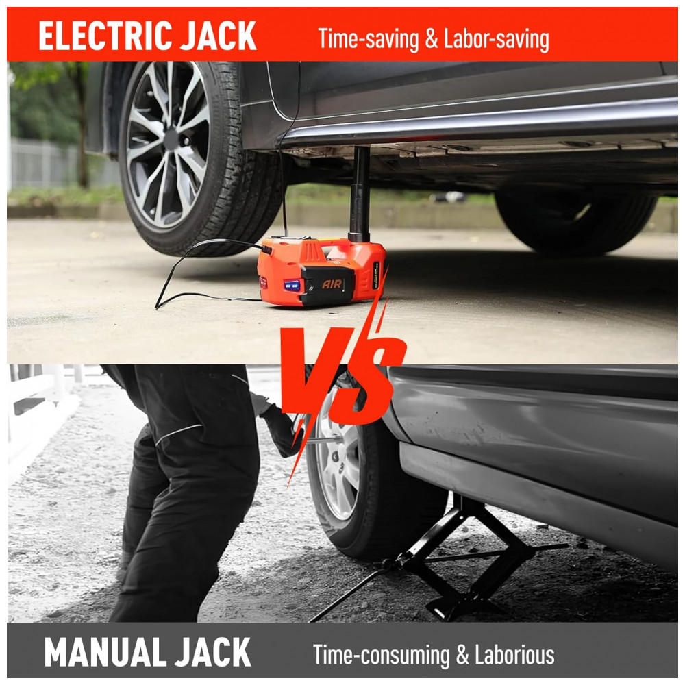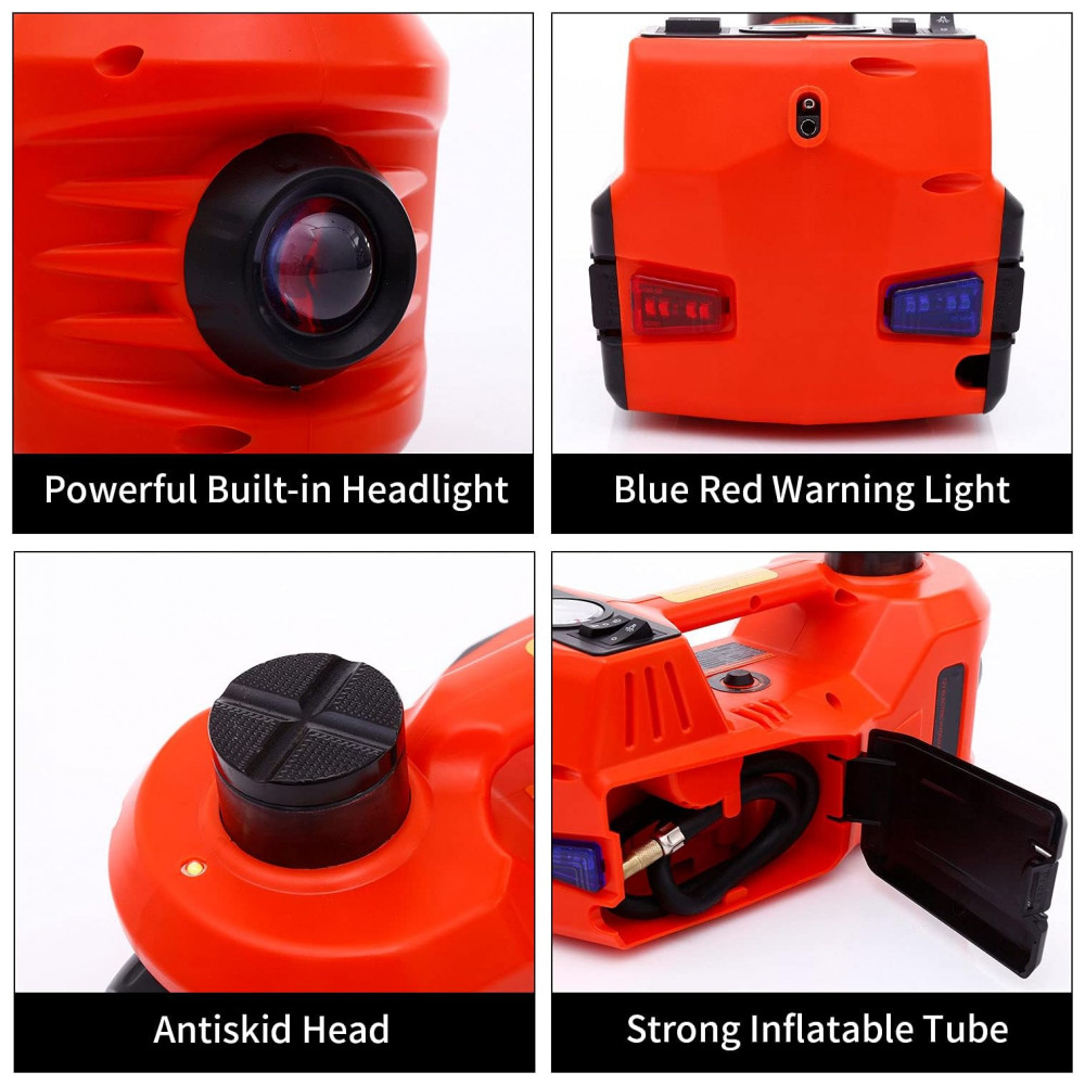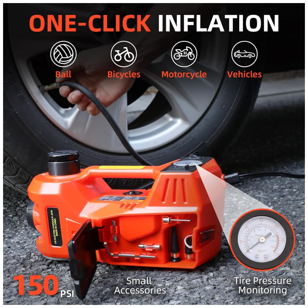 Macaco Elétrico 5 Toneladas 12V com Bomba de Pneu Integrada para Troca de Pneus de Emergência na Estrada – Trihelper