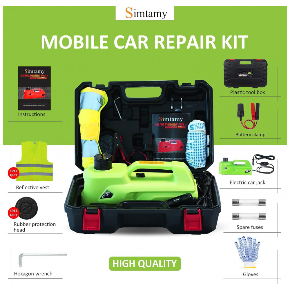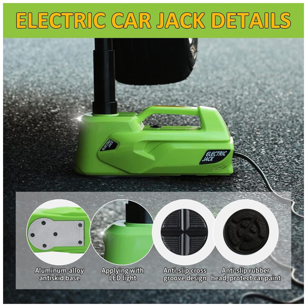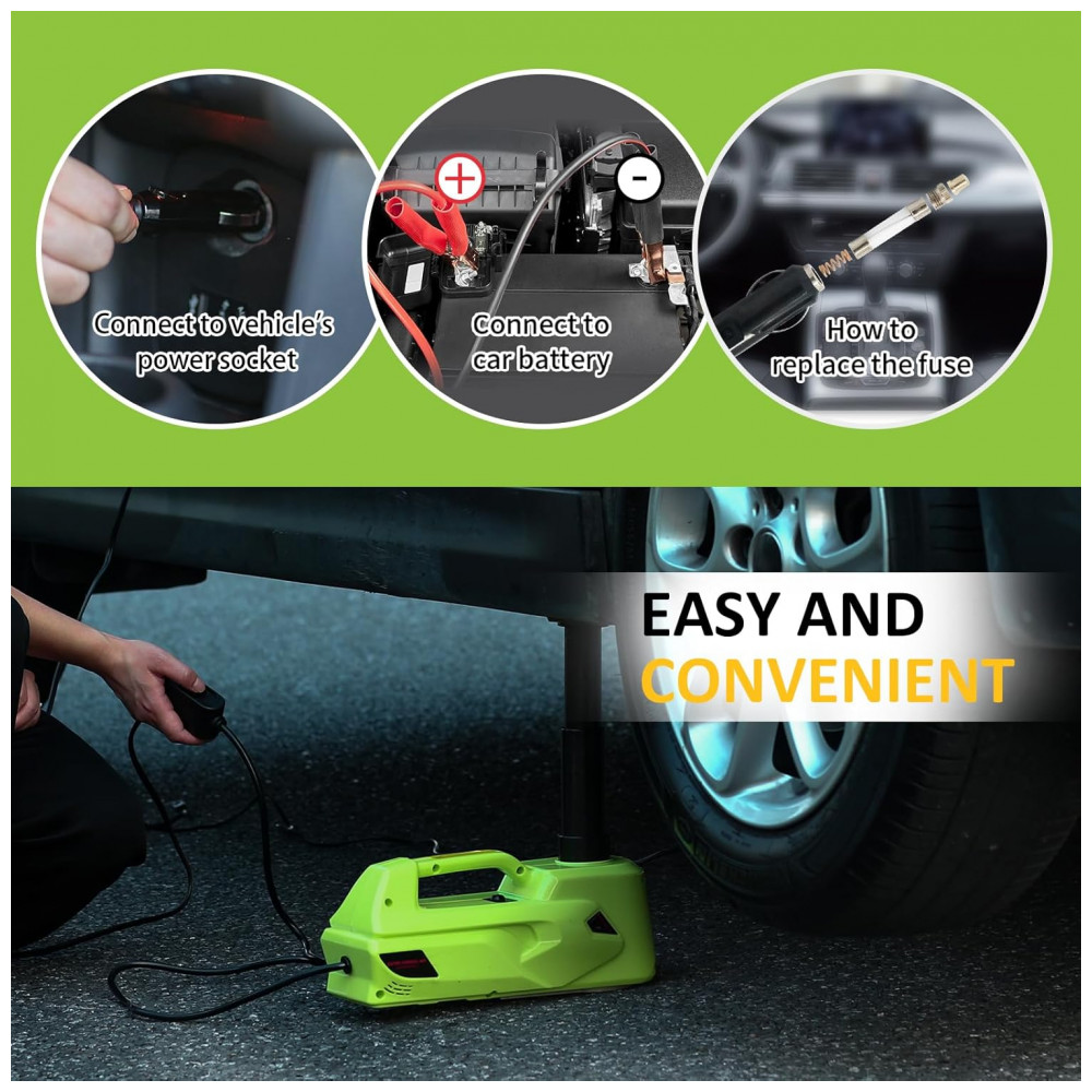 CAPACIDADE DE 5 TONELADAS: Este macaco elétrico é capaz de levantar veículos com peso de até 5 toneladas (11.000 lbs). Equipado com um potente motor elétrico, ele funciona de forma eficaz para levantar o carro à sua altura MÁX. Faixa de altura de elevação de 15,5 a 45 cm em apenas 2 minutos. APLICABILIDADE UNIVERSAL: Alimentado pelo acendedor de cigarros do carro ou pela bateria do carro, totalmente automático, economizando tempo e energia em comparação com o macaco manual. Ótima escolha para ser armazenado no porta-malas do carro para situações de emergência. SEGURANÇA E FACILIDADE: O macaco do carro está equipado com proteção contra sobrecarga para maior segurança. A válvula de segurança permite o controle manual do levantamento e abaixamento. Com um simples botão de acionamento e um cabo de alimentação de 3,5 metros, ele alcança facilmente todas as posições do seu veículo. APLICAÇÃO VERSÁTIL: Estrutura estável e segura, este elevador hidráulico portátil para carros é um auxiliar indispensável para garagens, fazendas, rodovias e viagens de longa distância. É muito adequado para a substituição emergencial de pneus à beira da estrada. Diga adeus ao tedioso desmonte manual, qualquer adulto pode facilmente trocar o pneu sozinho.