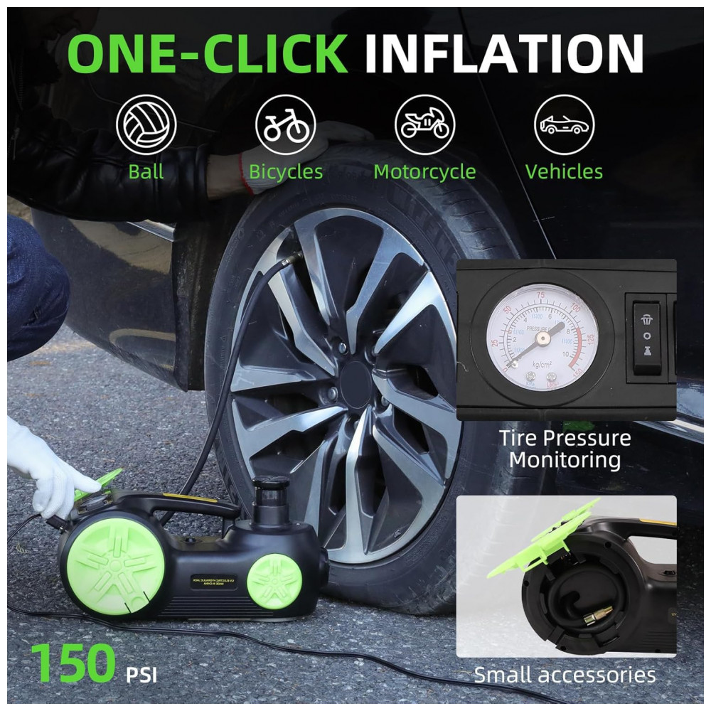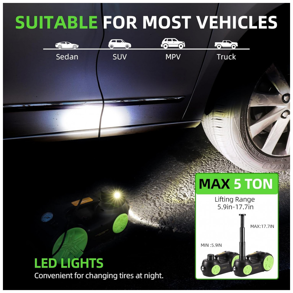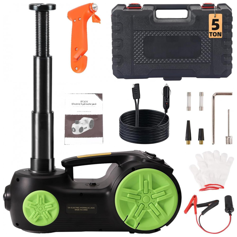 Macaco Elétrico Atualizado 5 Toneladas Elevador Hidráulico com Bomba de Pneus Integrada para Troca de Pneus de Carros de Passeio e SUVs – Trihelper
