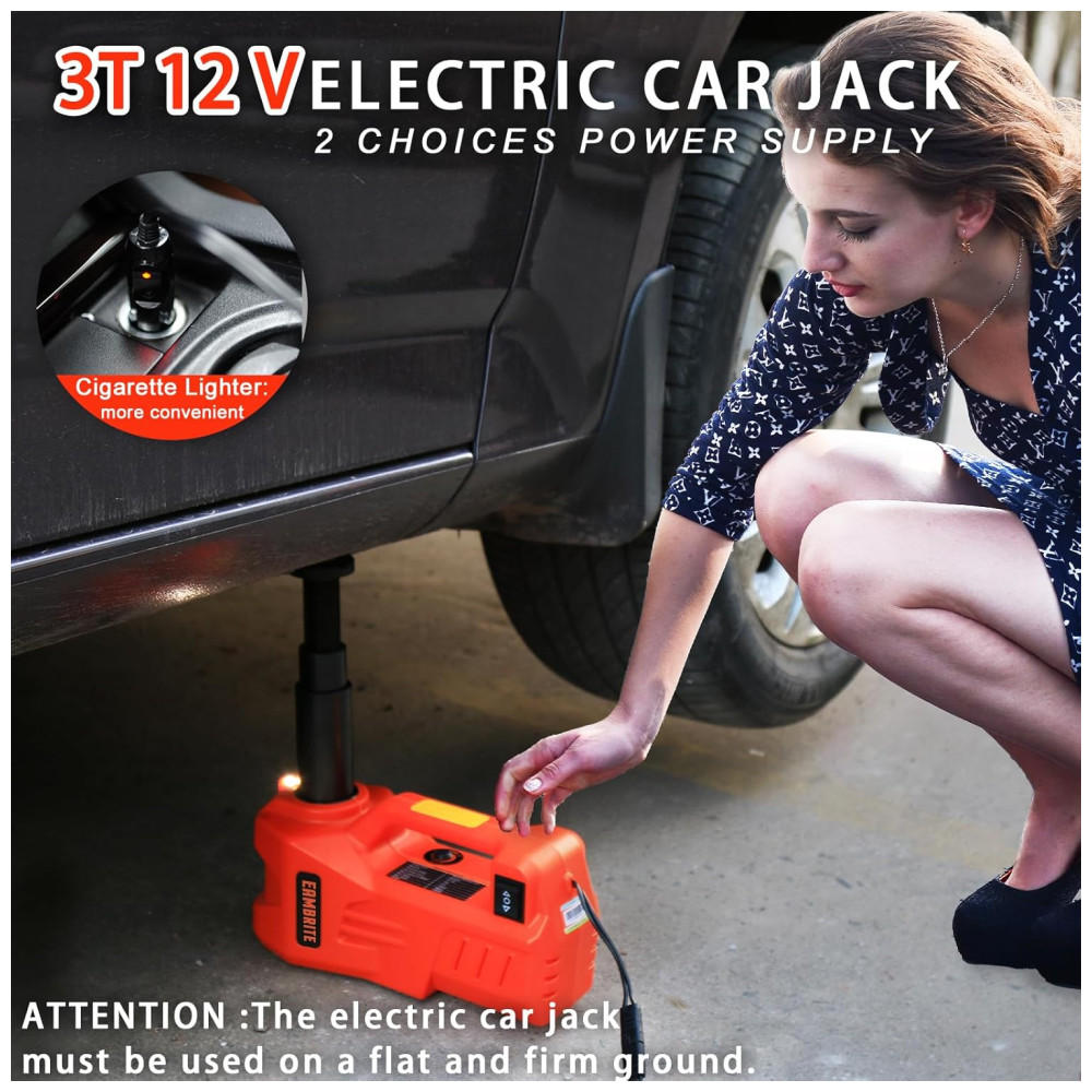 Macaco Elétrico Automotivo 12V até 1 Tonelada com Luz LED laranja EAMBRITE 5823933434 Laranja