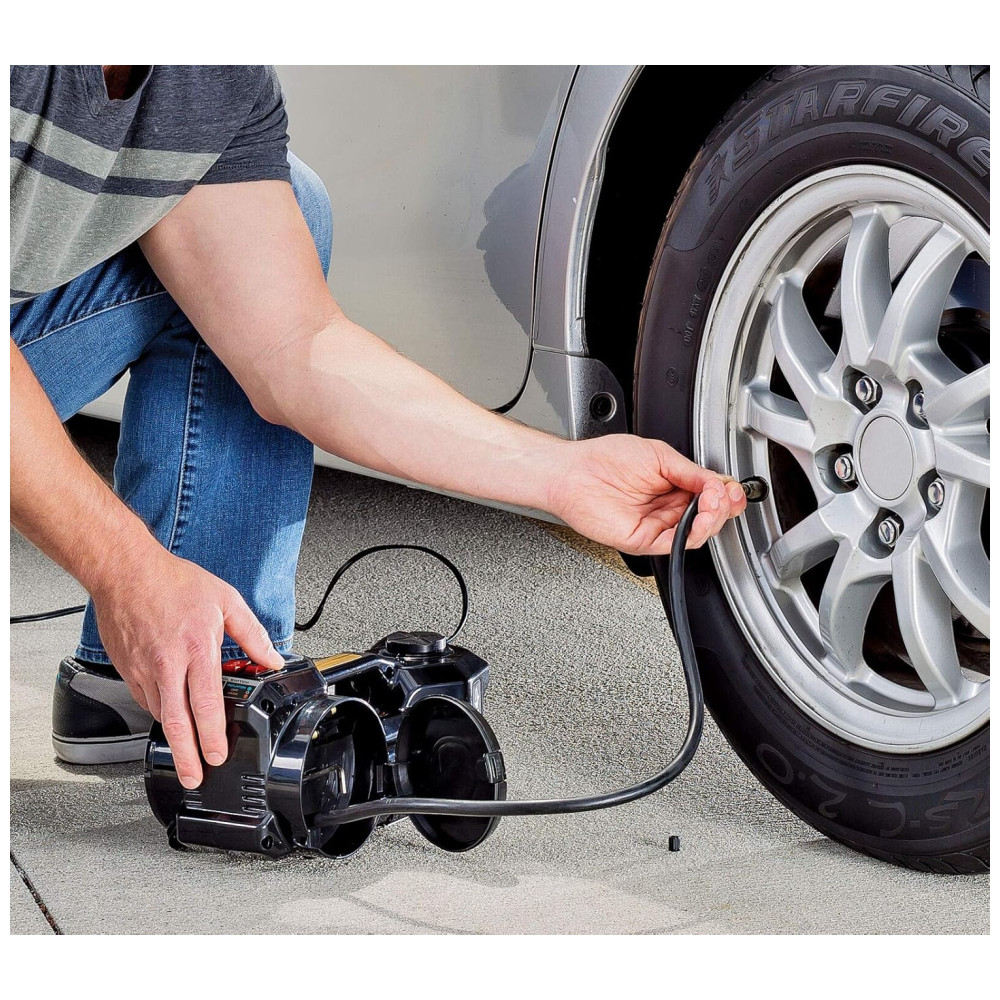 Macaco Elétrico Automotivo 2 em 1 12V até 1 Tonelada com Compressor de Ar POWERBUILT 620484 Preto