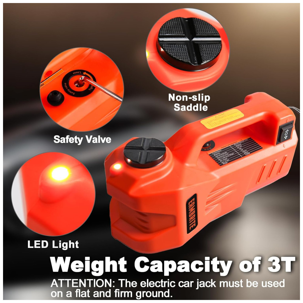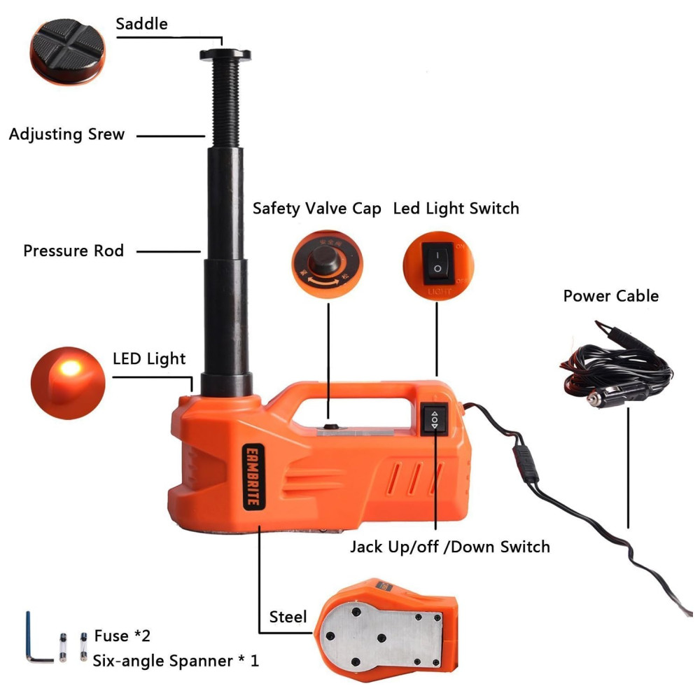 Macaco Elétrico Automotivo EAMBRITE até 1T Portátil 12V DC com Luz LED