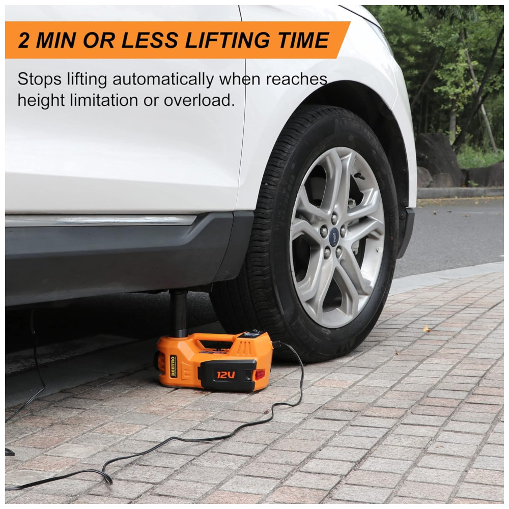 CAPACIDADE AVALIADA Os macacos deste carro têm um peso de levantamento máximo de 5 toneladas 11.000 libras e uma faixa de altura de levantamento de 6 a 17,7 polegadas. O inflador do pneu fornece uma taxa de fluxo de ar de 35 L , min. É fácil de usar e leva apenas cerca de 2 minutos para atingir a altura máxima, permitindo que você conclua o reparo de forma rápida e fácil. Perfeito para o proprietário do carro, especialmente a melhor escolha para as mulheres.