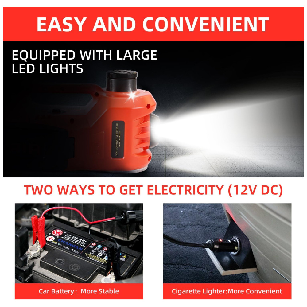 Macaco Elétrico Automotivo Hidráulico com Luz LED Suporta até 5 Toneladas ROGTZ Laranja