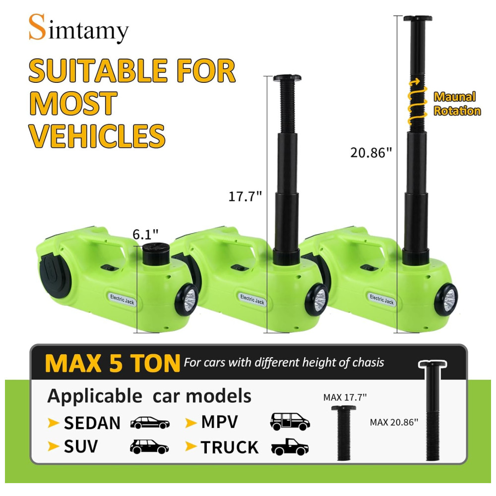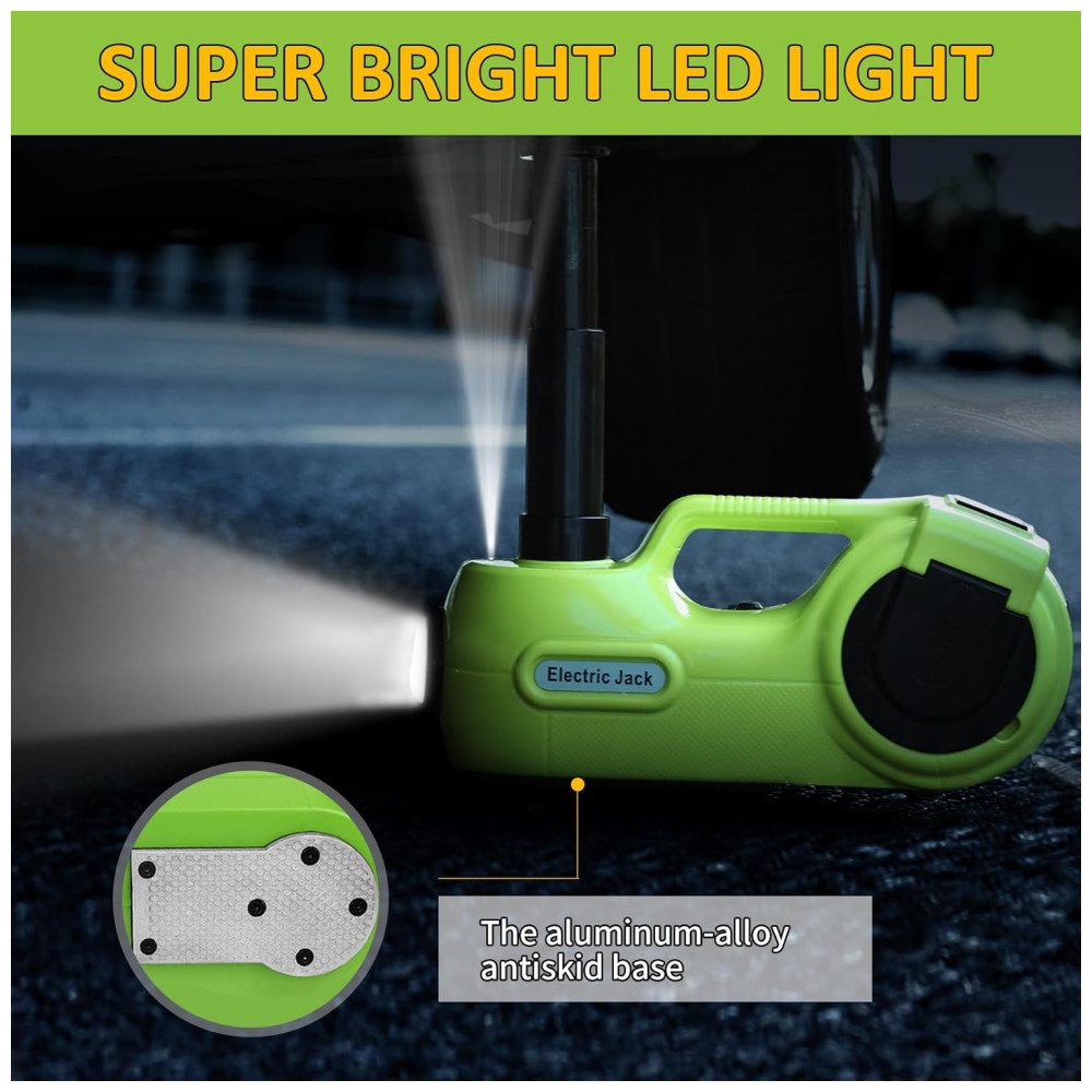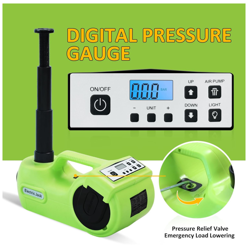 Macaco Elétrico Automotivo Hidráulico com Luz LED Suporta até 5 Toneladas SIMTAMY ZSYT02 B05 G C Verde lima