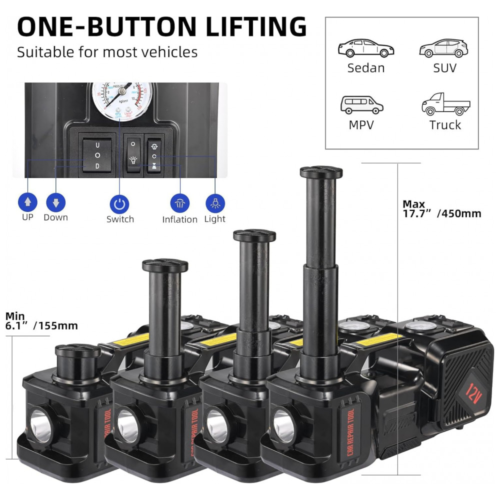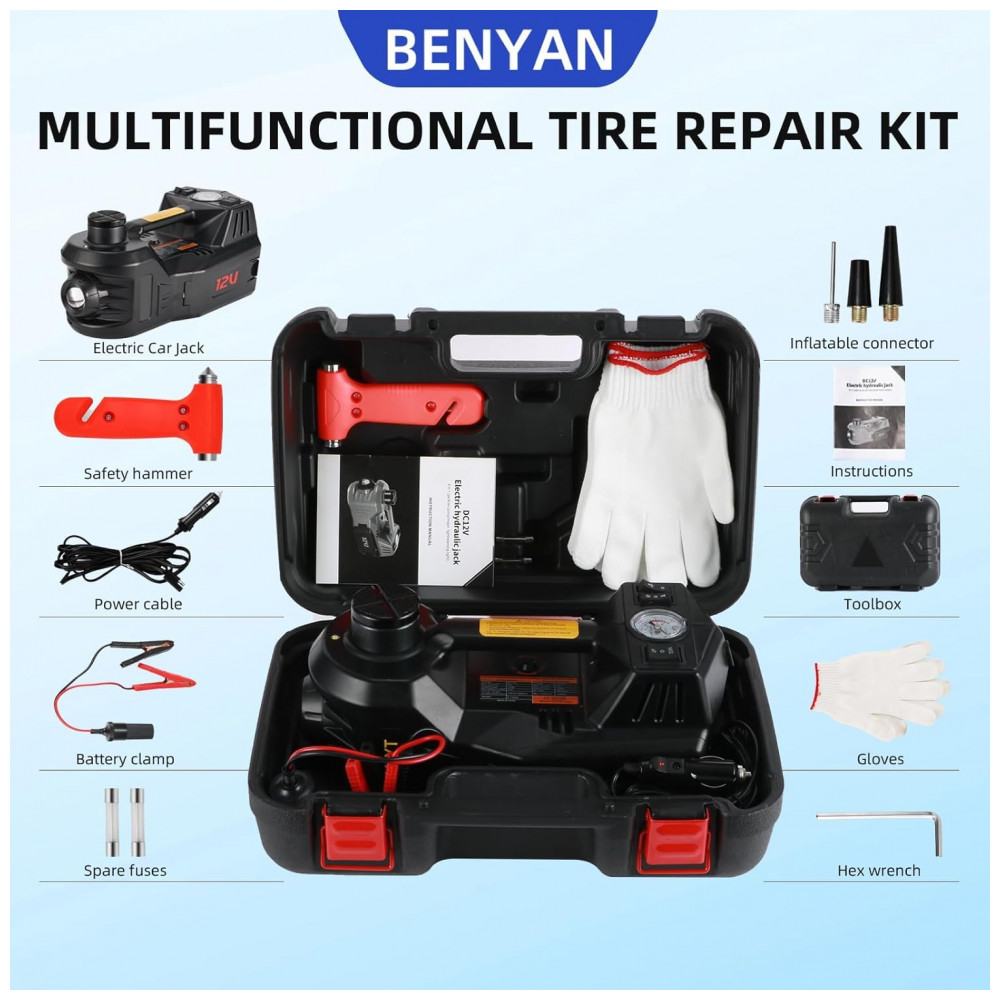 Macaco Elétrico BENYAN de 5 Toneladas com Kit de Bomba Inflável 12V Macaco Elétrico Portátil com Luz LED para SUV MPV e Sedan