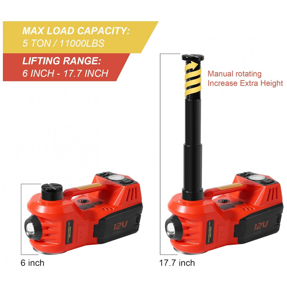 Macaco Elétrico Hidráulico de 5 Toneladas Kit Portátil com Luz LED Compatível com Carro SUV Caminhão Alcance de Elevação 1570 CentímetrosTYAYT
