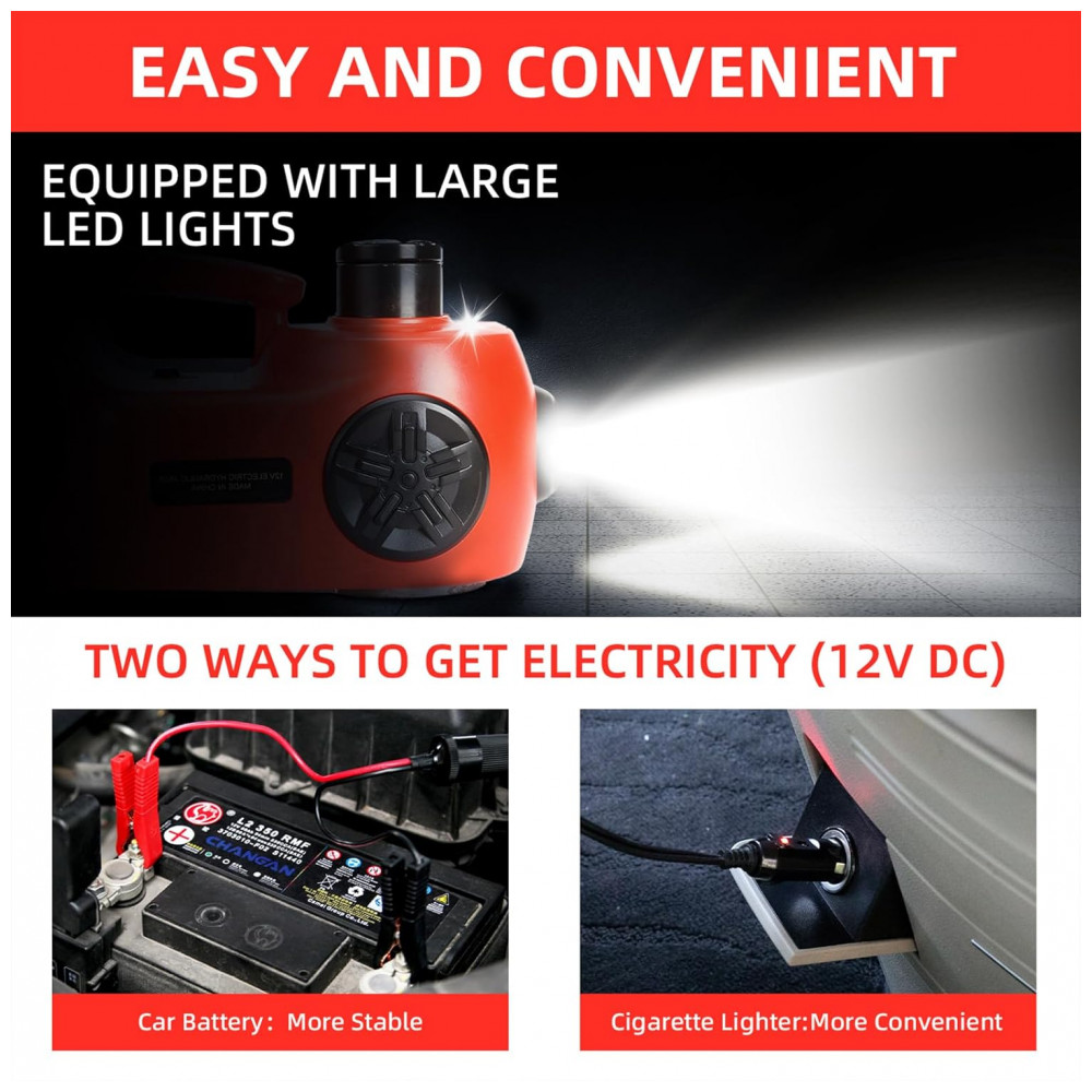 Macaco Elétrico Hidráulico ROGTZ Atualizado 5 Toneladas 12V Elevação Portátil 53cm com Bomba Infladora de Pneus para Reparos de SUV Sedan e Caminhão K