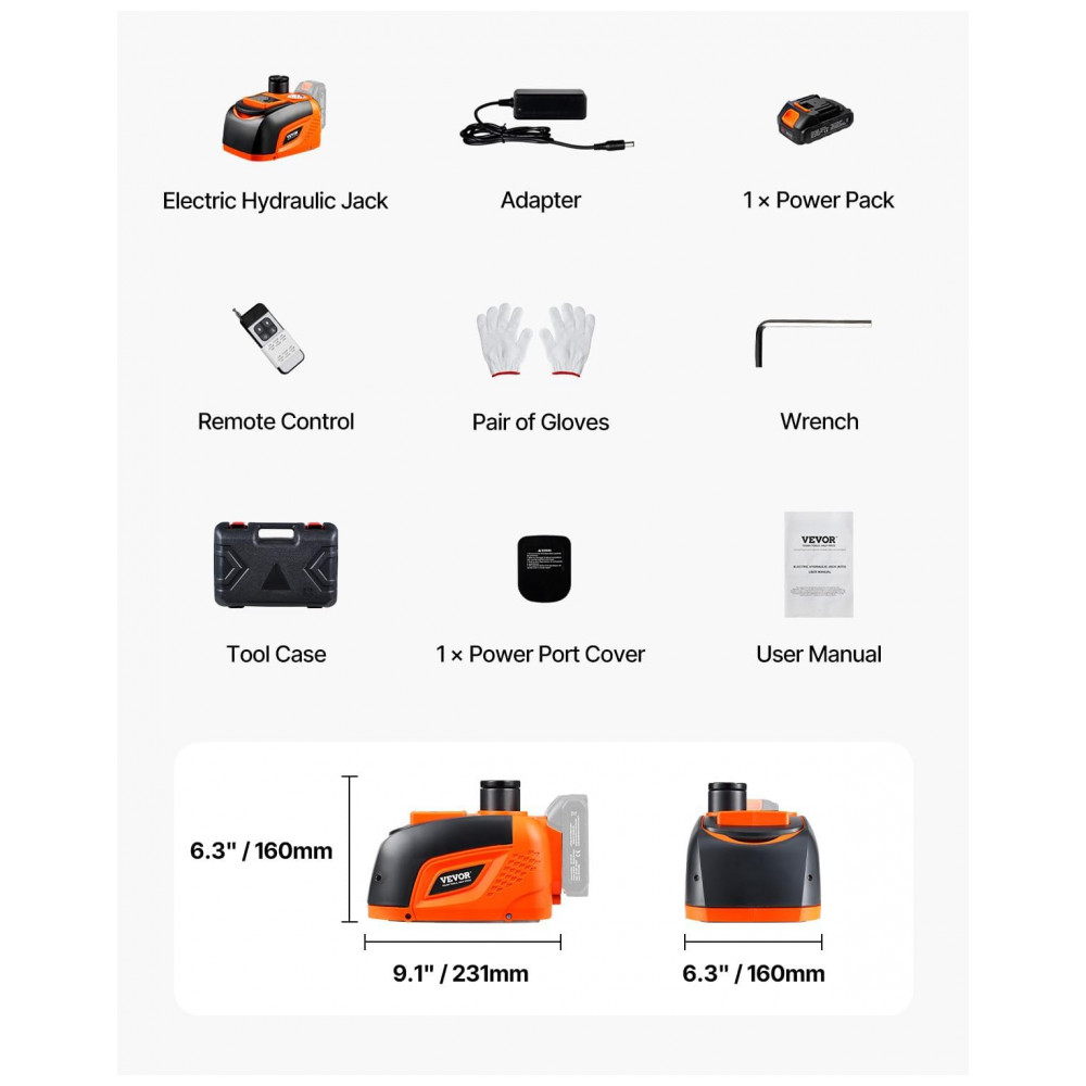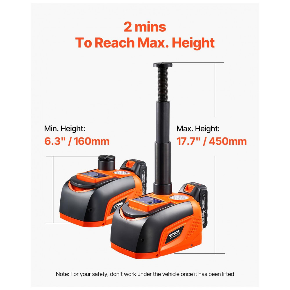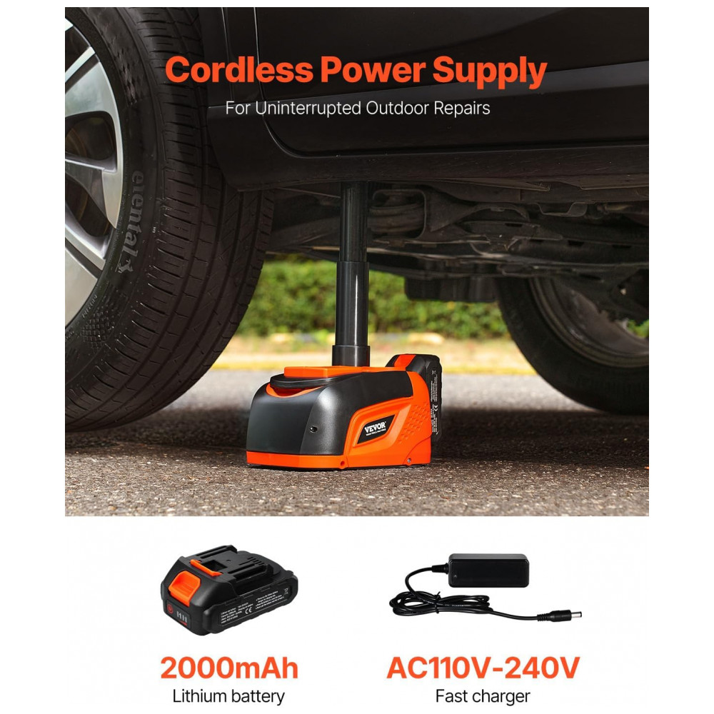 O Macaco Elétrico VEVOR é alimentado por uma bateria de lítio de alta capacidade de 2000mAh com carregador rápido, garantindo energia duradoura. Pode realizar 10 elevações em uma carga completa. Projetado para veículos de 5T, como carros, SUVs e caminhões, com alcance hidráulico de 160-450mm. Possui controle remoto sem fio com alcance de 5 metros, facilitando o processo de elevação. Com iluminação LED brilhante, cabeça superior antiderrapante e alta estabilidade, oferece uma experiência de elevação segura e confiável.
