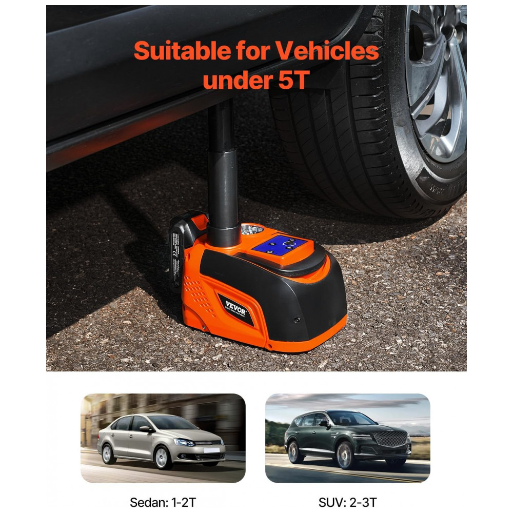 Macaco Elétrico VEVOR 5 Toneladas Controle sem Fio Iluminação LED Gama de Elevação de 135-360mm para Reparo de SUV MPV Sedan e Caminhão
