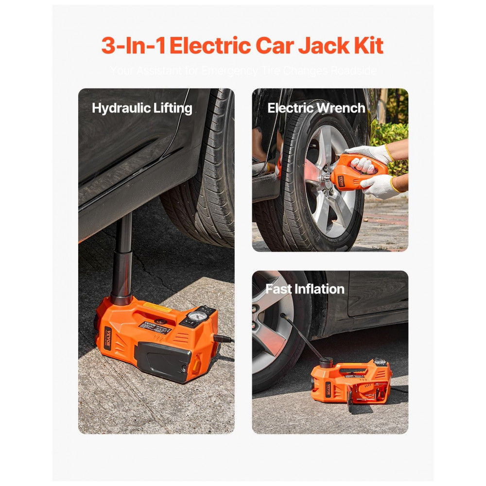 Macaco Elétrico VEVOR 5 Toneladas Macaco Elétrico com Inflador Incorporado Troca de Pneus de 12V com Chave de Impacto Elétrica e Luz LED