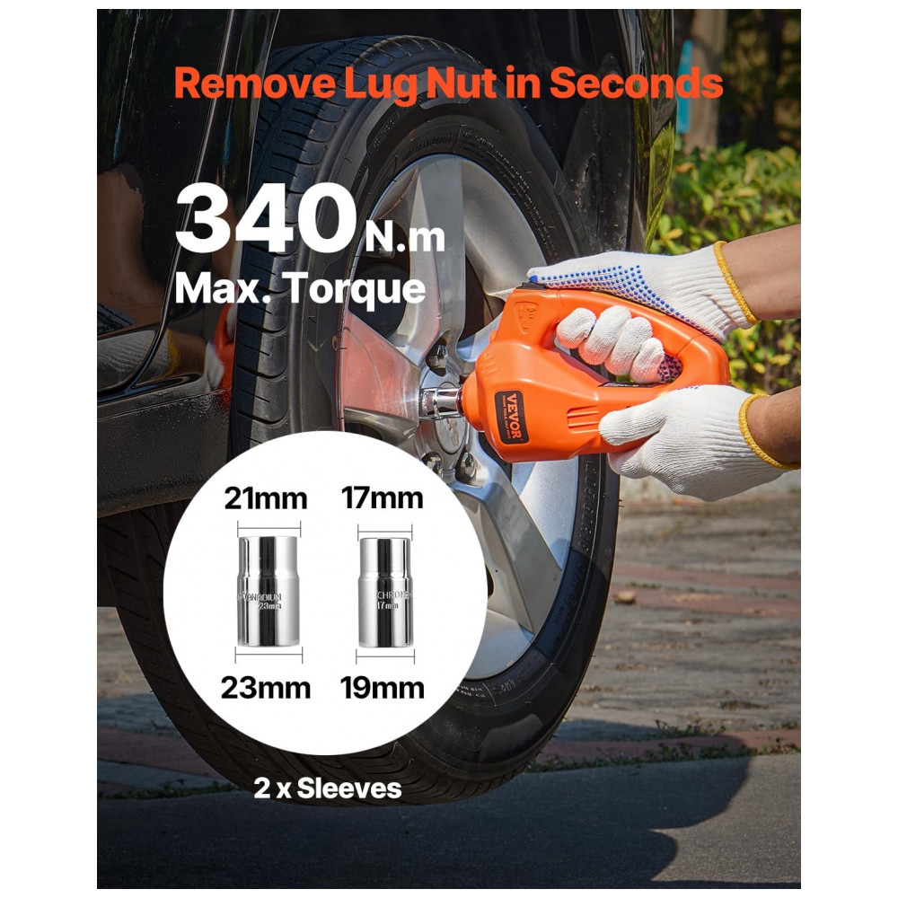 Combo de Inflação e Elevação: Nosso macaco elétrico para carros combina funções de inflação e elevação, com 3 bocais padrão para inflar o pneu em minutos. O macaco hidráulico aumenta a eficiência na troca de pneus. Projetado para Veículos de 5 Toneladas: Desenvolvido para levantar pneus individuais em veículos de 5 toneladas. Alcance de elevação hidráulica de 15-45 cm, ideal para carros, SUVs e veículos com diferentes alturas em relação ao solo. Fonte de Alimentação Dupla: Equipado com acendedor de cigarros e grampo de alimentação de 12V para opções de energia flexíveis. Para veículos com mais de 5 toneladas, recomendamos usar a alimentação do carro para garantir uma elevação estável. Inclui 5 fusíveis sobressalentes para evitar queimaduras de fusíveis. Chave de Impacto Elétrica Eficiente: Com um torque máximo de 340 Nm, a chave de impacto elétrica aperta ou afrouxa rapidamente os parafusos. Inclui 2 soquetes hexagonais, compatíveis com 4 tamanhos de parafusos – 17-19 mm e 21-23 mm, adequados para a maioria das porcas de roda. Luz LED com Marcação Clara: Este macaco elétrico apresenta iluminação LED brilhante para iluminação de emergência, garantindo trocas seguras de pneus à noite. A caixa de ferramentas é marcada com um triângulo reflexivo vermelho para visibilidade do veículo.