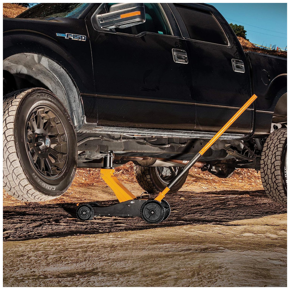 O macaco CAT Big Wheel Off Road é o macaco perfeito para todos os tipos de caminhões, jipes, SUVs, elevadores e veículos off road. O macaco possui uma placa deslizante inferior para mantê lo estável e nivelado em superfícies macias como areia ou cascalho. O adaptador incluído aumenta a altura máxima total de elevação em 19 centimetros. As rodas grandes tornam este macaco fácil de manobrar em qualquer superfície, seja no deserto ou na estrada. Qualquer pessoa que possua um veículo maior do tipo caminhão ou SUV deve ter um destes Macacos. A construção híbrida de aço, alumínio mantém o peso total do macaco baixo para que seja mais fácil de manusear, posicionar e zenar.