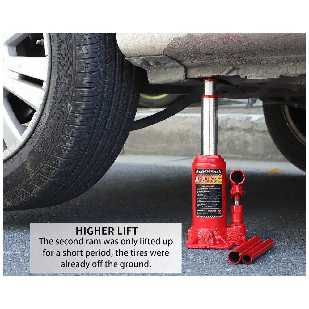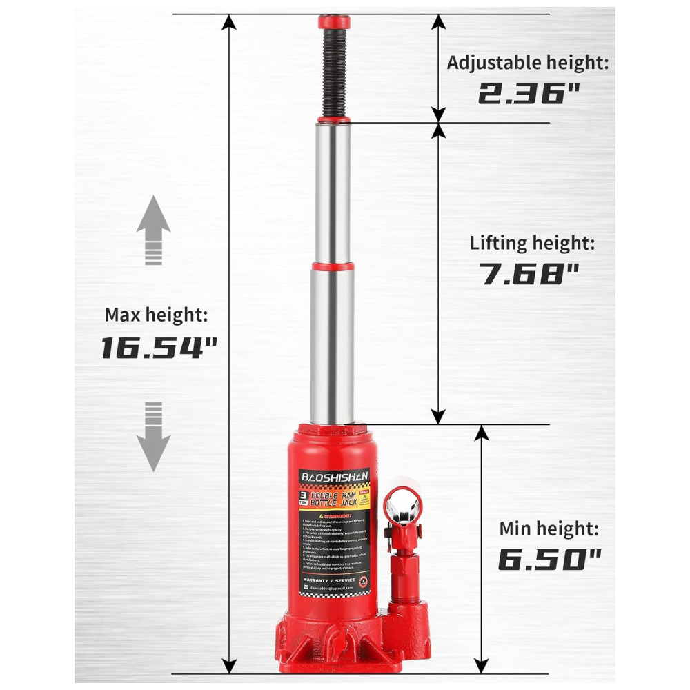 Macaco Hidráulico de Garrafa para Carro Suporta até 3 Toneladas Ram Duplo BAOSHISHAN
