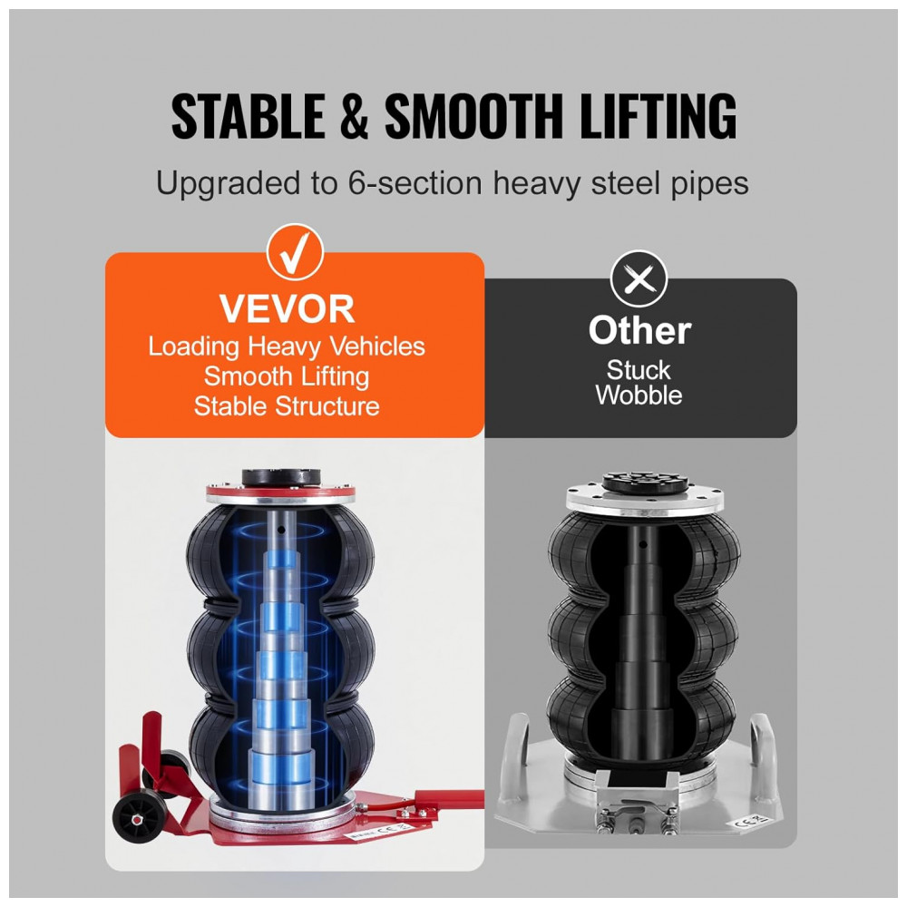 Capacidade de carga de 3 toneladas: com uma impressionante capacidade de carga de 3 toneladas , 6600 libras, nossa tomada de airbag foi projetada para suportar uma ampla gama de modelos domésticos e comerciais. De carros e picapes familiares a micro carros e SUVs, esse jack o cobre.