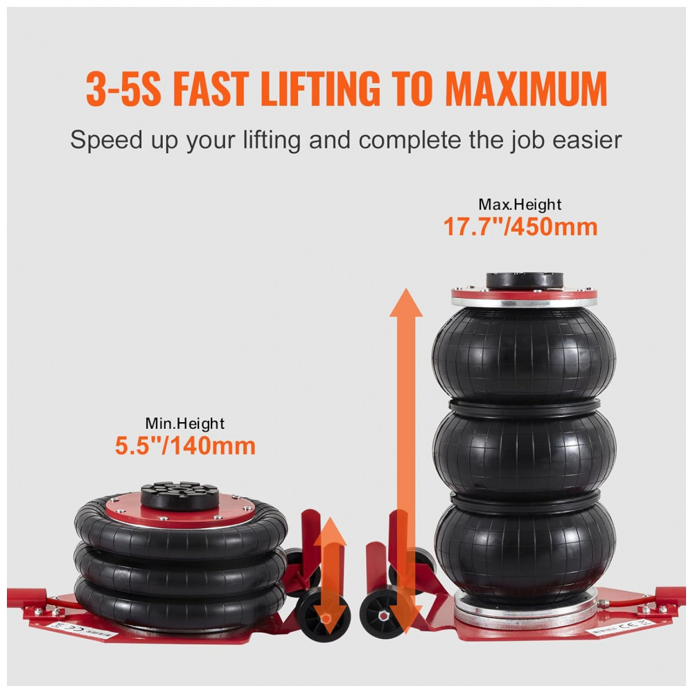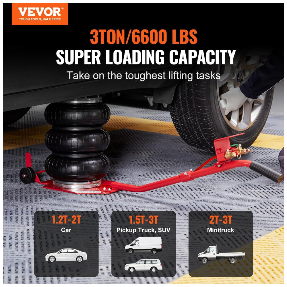Macaco Pneumático de Levantamento Rápido até 3 Toneladas para Carros VEVOR Vermelho