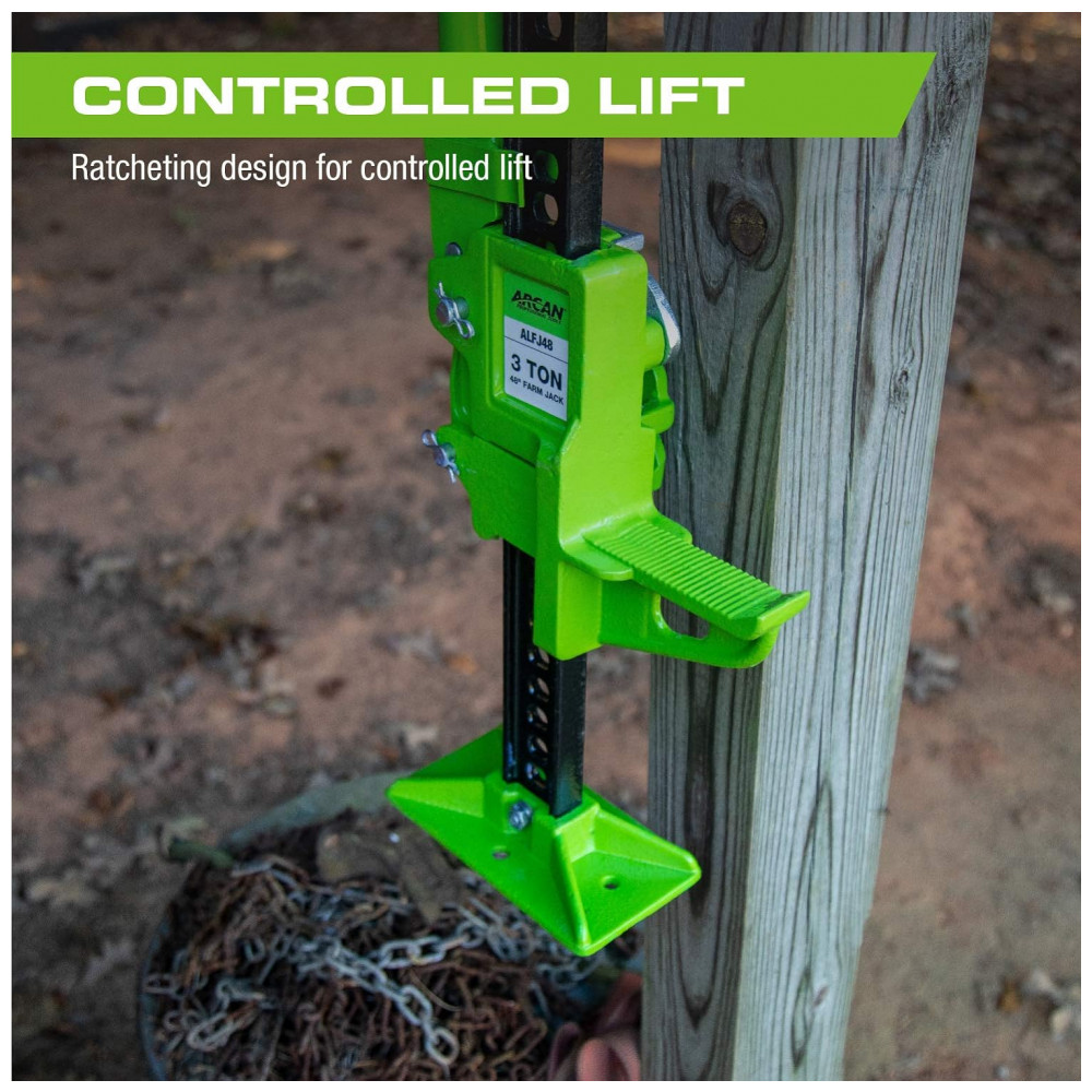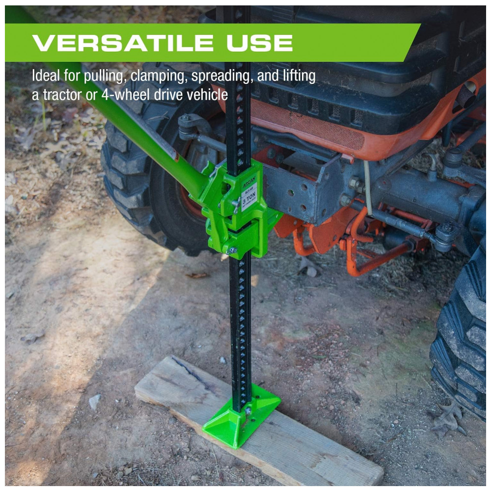 Macaco Utilitário Off Road para Serviço Pesado com Design de Catraca Construção em Aço Faixa de Elevação de 12 a 100 centimetros Arcan ALFJ48 Verde