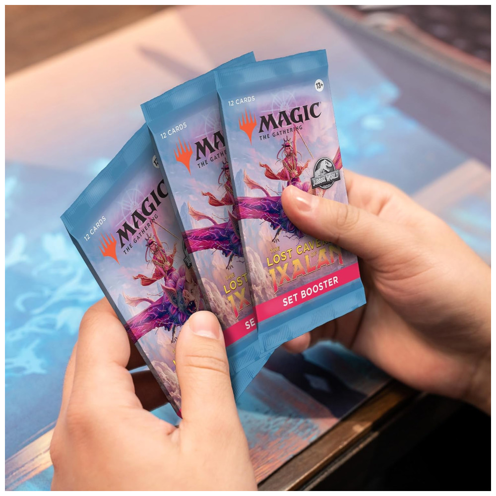 Dentro de cada Set Booster, você encontrará 12 cartas de Magic, oferecendo uma experiência emocionante a cada abertura. Além das cartas, cada pacote inclui um Art Card, proporcionando uma visão única da arte inspiradora de Magic.