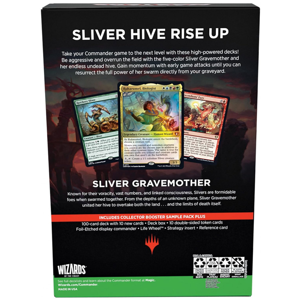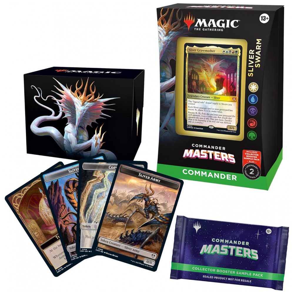 Com tudo o que você precisa para jogar e mais, o conjunto Sliver Swarm Commander Masters Commander Deck é uma ótima escolha para jogadores de todos os níveis de habilidade. Não perca a chance de elevar seu jogo de Commander para o próximo nível