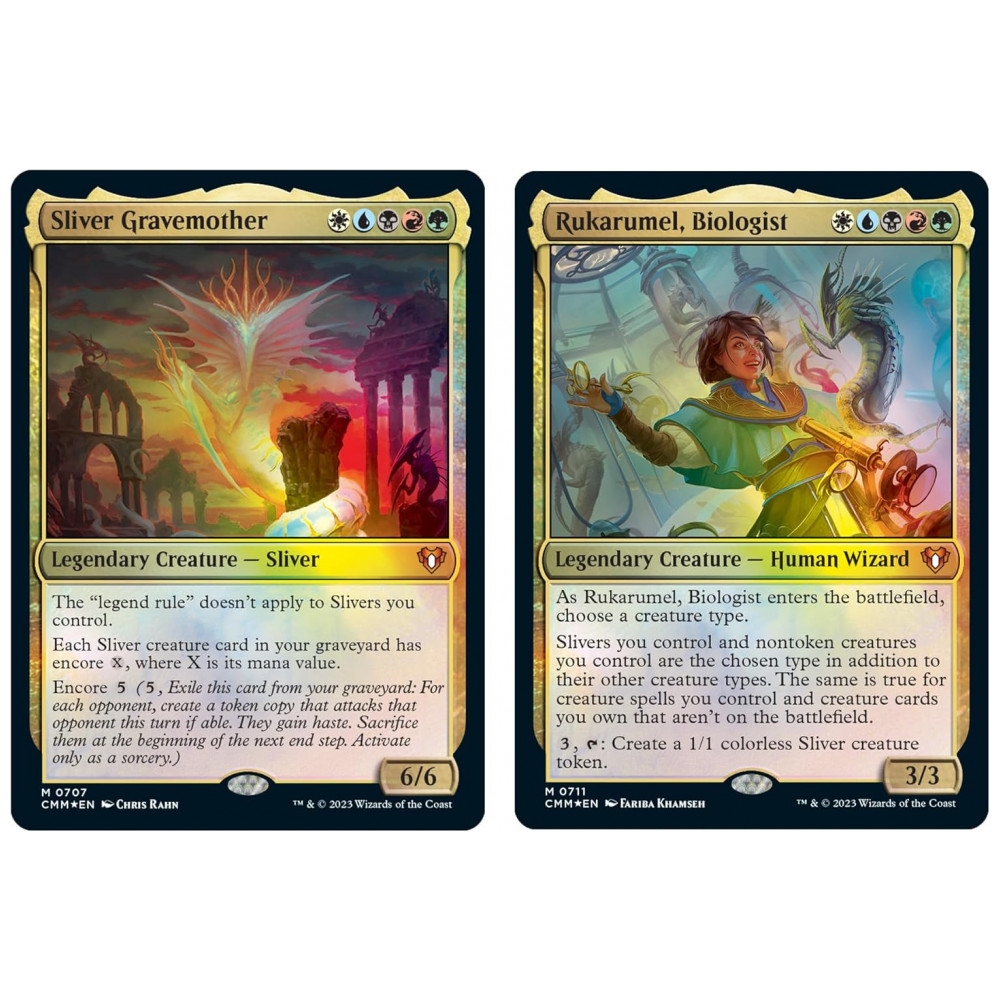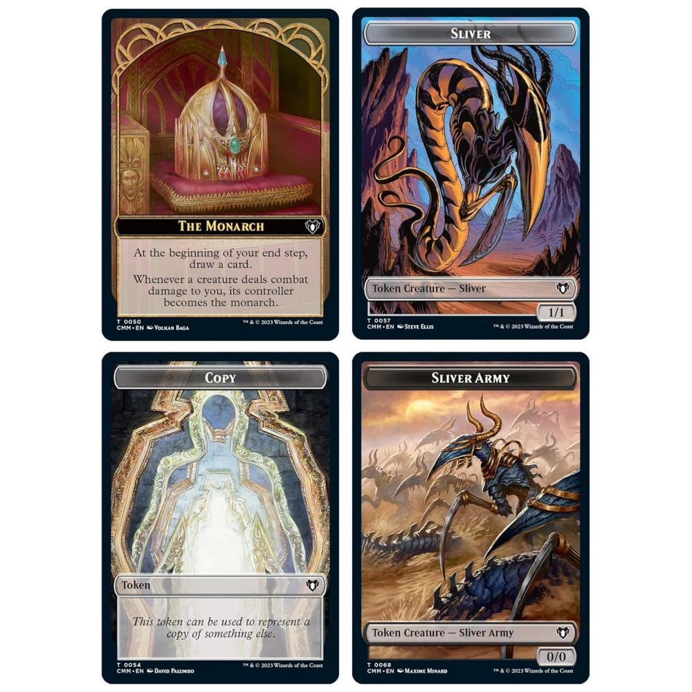 Além disso, cada baralho vem com um pacote de amostra de booster de colecionador de 2 cartas contendo 2 cartas de tratamento especial do conjunto Commander Masters, incluindo 1 raro ou mítico raro. O conjunto também inclui 1 Display Commander foiletado, 10 fichas de dupla face, 1 Roda da Vida, 1 encarte de estratégia e 1 cartão de referência.