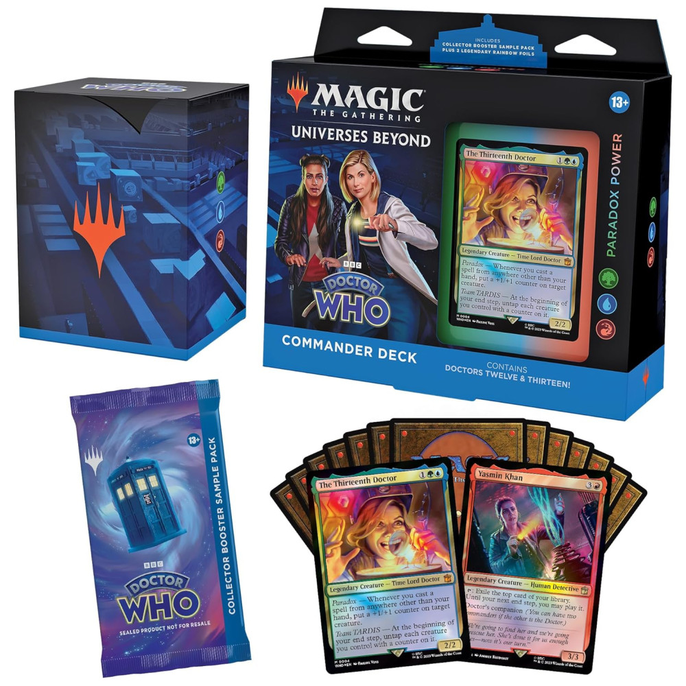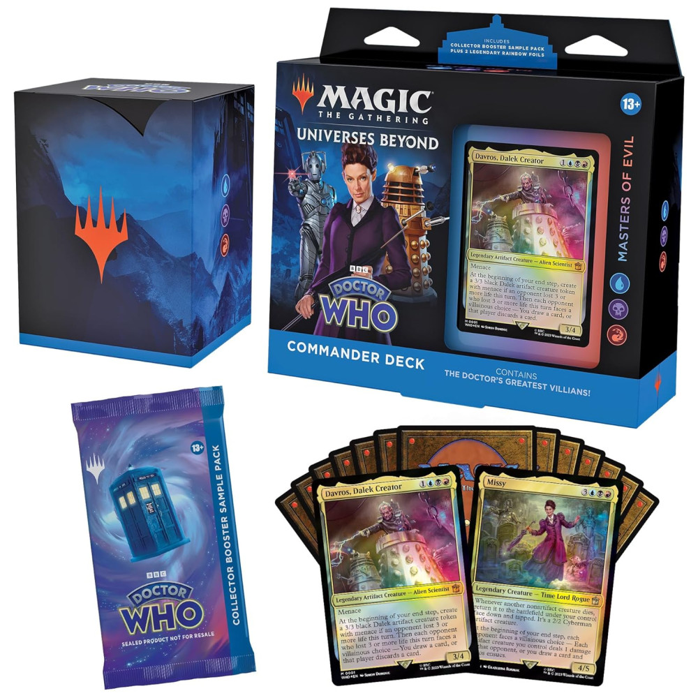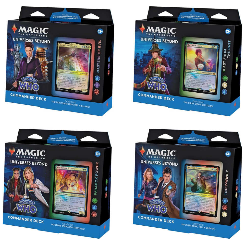 Com os decks Masters of Evil, Blast from the Past, Timey-Wimey e Paradox Power, você poderá reviver momentos memoráveis e explorar os personagens e lugares mais marcantes de Doctor Who enquanto enfrenta seus amigos em batalhas épicas de Magic.