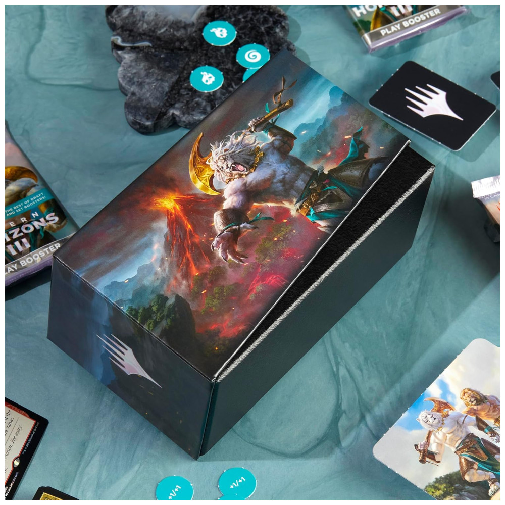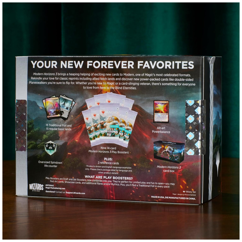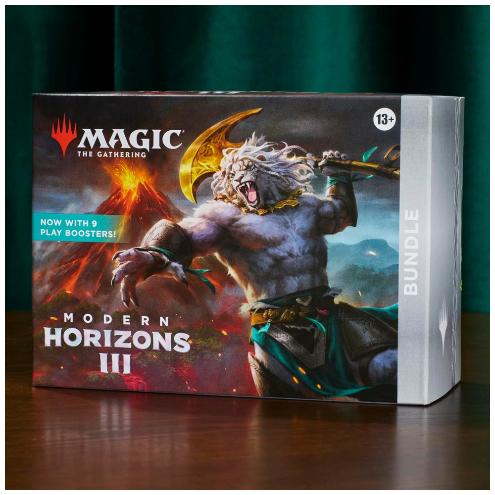 CONTEÚDO DO PACOTE: Obtenha um Bundle cheio de cartas e acessórios de MTG com 9 Play Boosters de Modern Horizons 3, 1 carta foil tradicional com arte alternativa, 30 cartas de terreno (15 foil e 15 não foil), 1 contador de vida spindown, 1 caixa de armazenamento de cartas, e 2 cartas de referência.