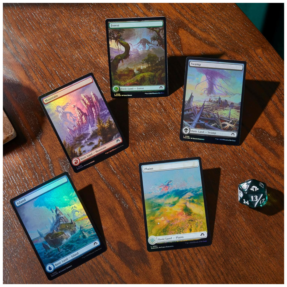 TERRENOS FULL-ART & CARTAS COM ARTE ALTERNATIVA ESPECIAL: Cada Bundle também vem com 1 carta promocional foil tradicional com arte alternativa exclusiva do Bundle, e 10 dos 30 terrenos incluídos apresentam uma impressionante Full-Art (5 foil e 5 não foil).